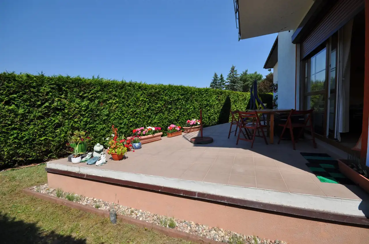 Dom jednorodzinny z osobnym wejściem dla turystów i podwójnym garażem.