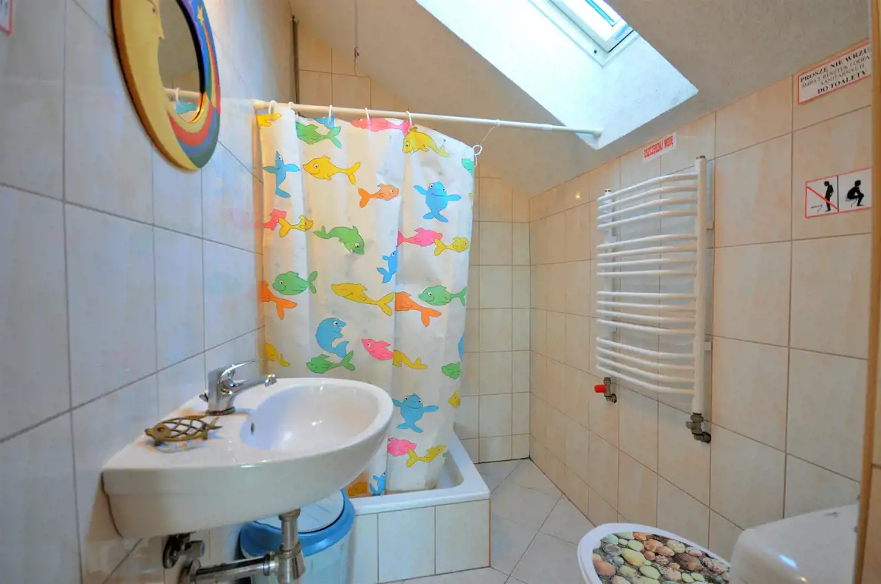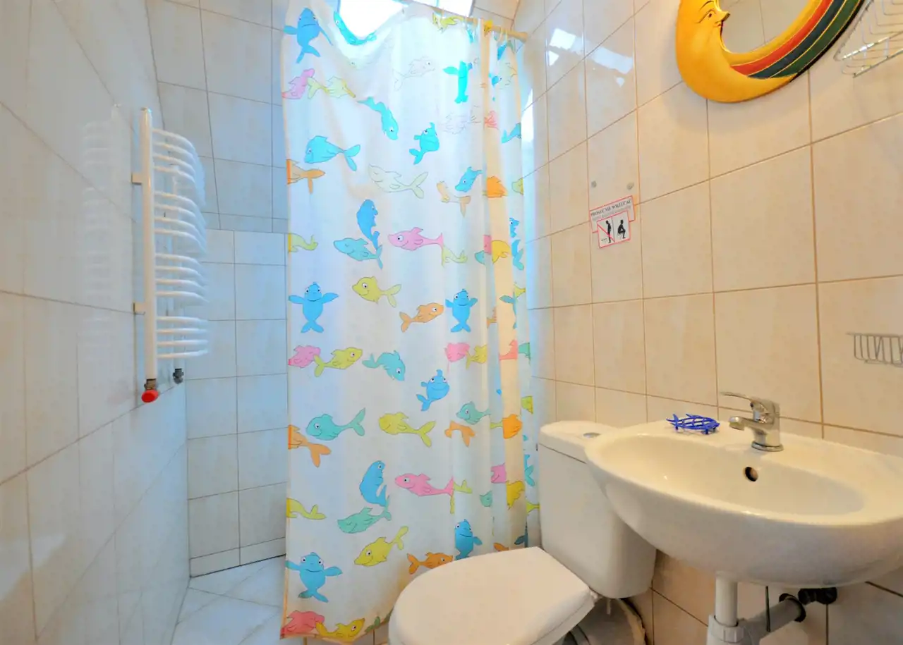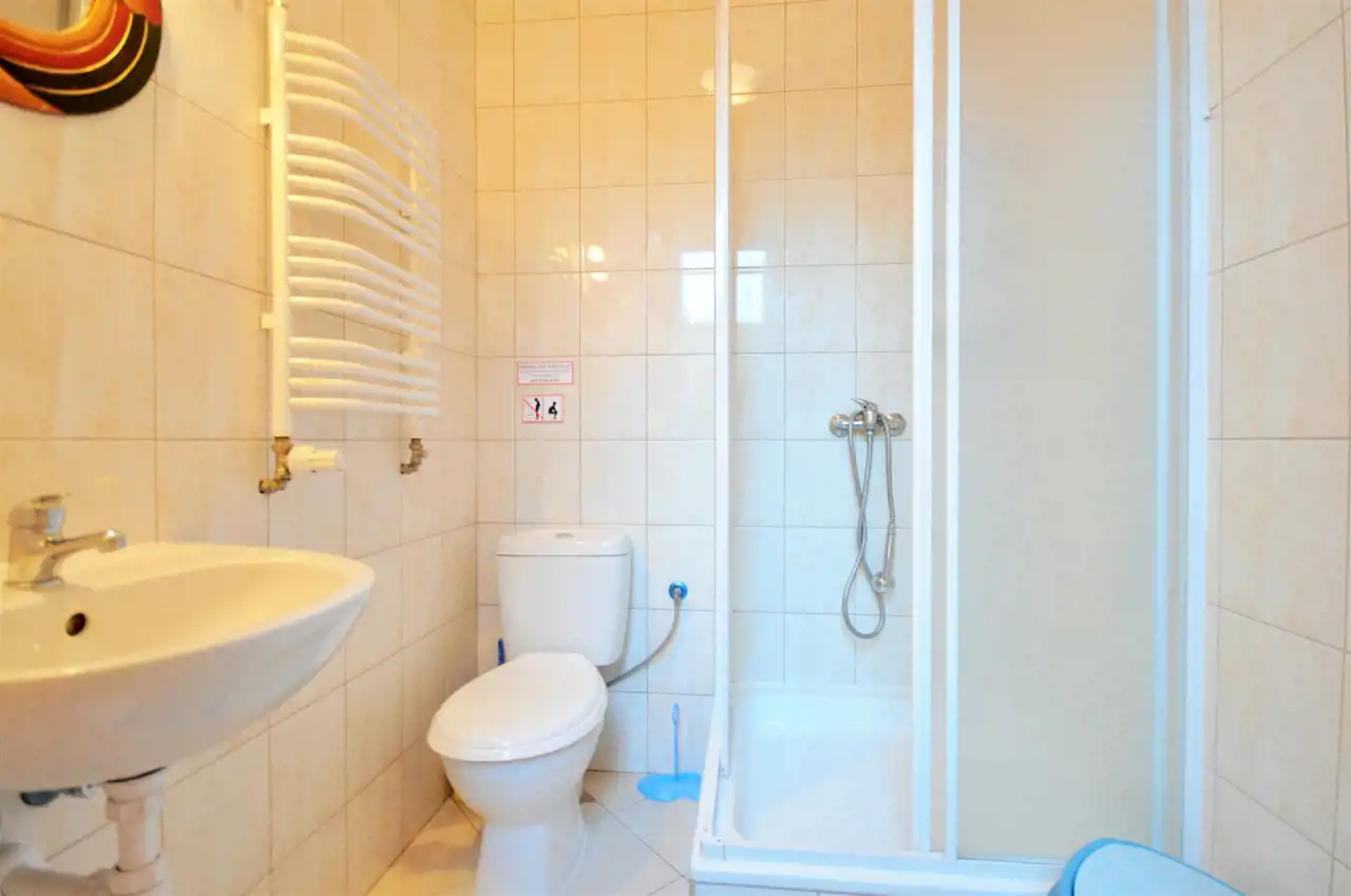 Na piętrze, z osobnym wejściem, znajduje się 8 pokoi i 8 łazienek oraz korytarz z aneksem kuchennym dla gości.