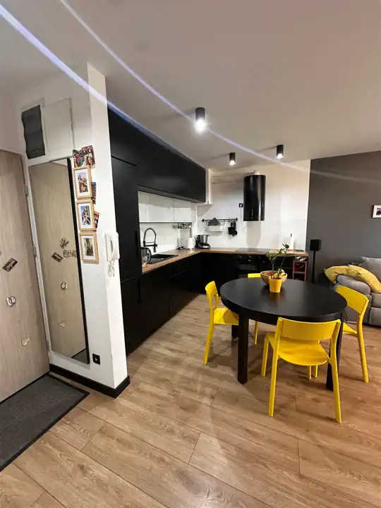 - 40 m² – funkcjonalny układ: salon z aneksem kuchennym, osobna sypialnia, łazienka i przedpokój