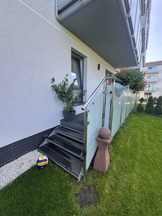 - duży balkon z zejściem do prywatnego ogrodu - idealny na poranną kawę, grilla czy zabawę dzieci
