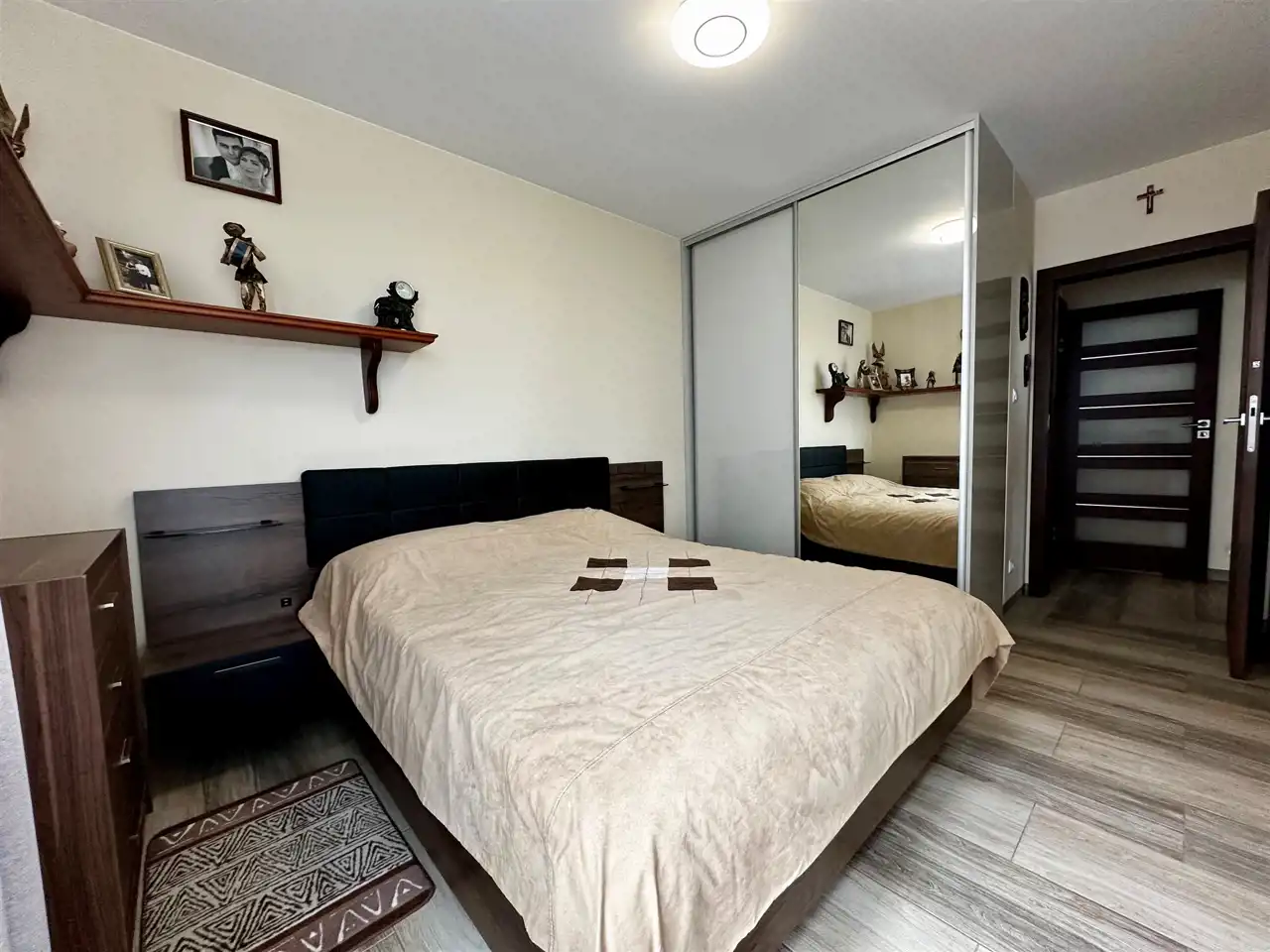 Dwie sypialnie z szafami w zabudowie, również pakowna szafa w przedpokoju.