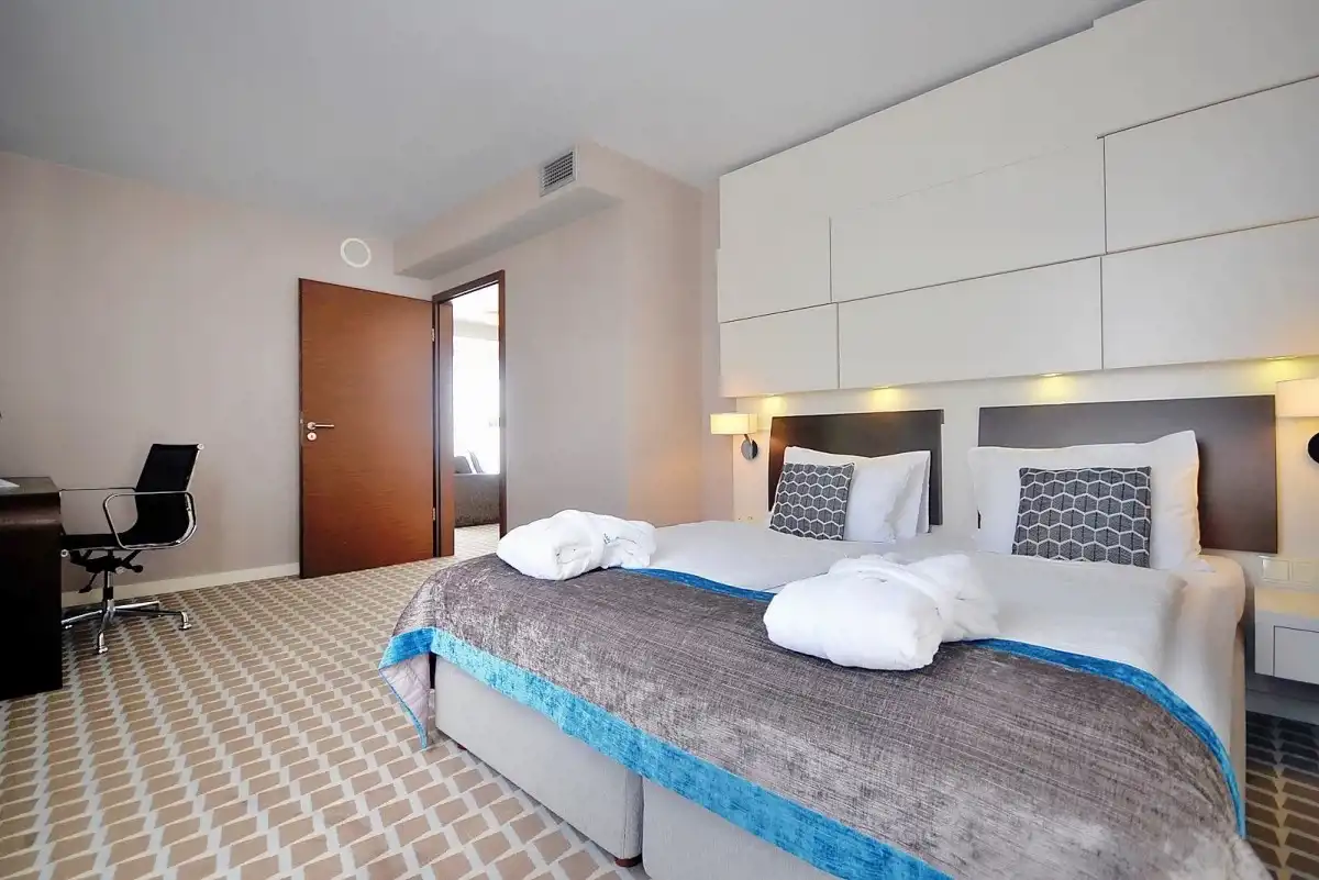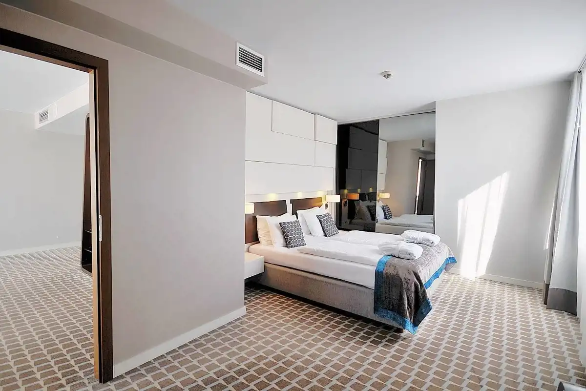 Oferujemy Państwu na sprzedaż przestronny apartament z 2 sypialniami położony w Kołobrzegu, na I piętrze w Marine Hotel by Zdrojowa. Oferowany lokal ma charakter niemieszkalny i sprzedawany jest z 23% podatkiem VAT z możliwością jego odliczenia. Cena lokalu netto wynosi 1.210.569,11 PLN + 23% VAT. Lokal na ten moment jest wykorzystywany w ramach umowy najmu jako pokój hotelowy w w Marine Hotel by Zdrojowa. Właściciel lokalu otrzymuje z tego tytułu stały czynsz najmu. Istnieje możliwość wejścia w prawa i obowiązki z tytułu dotychczasowej umowy.