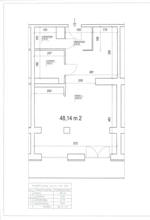 - Charakterystyka mieszkania 48.14 m2, 2 pokoje
