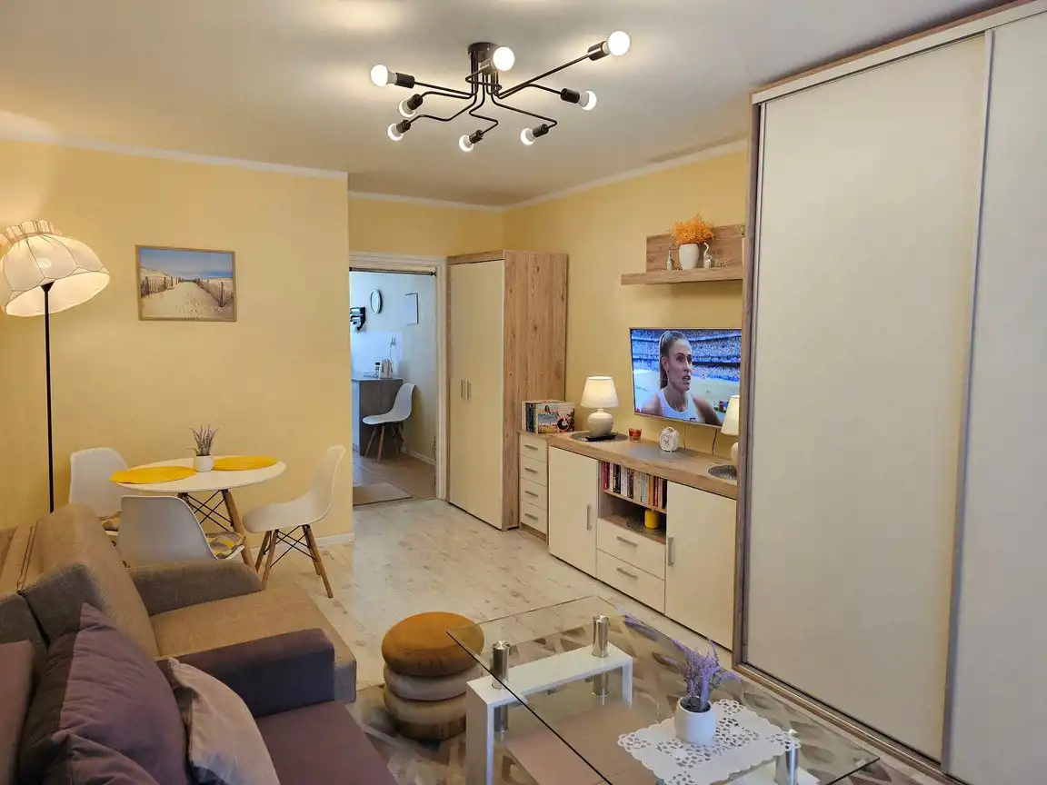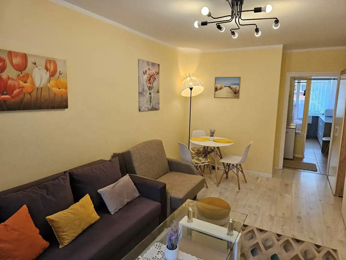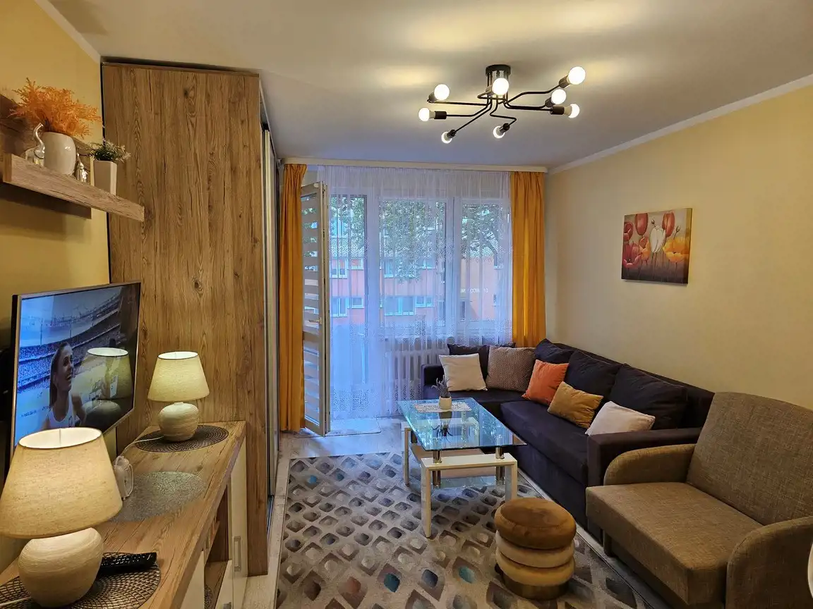 Ogrzewanie miejskie, kuchenka gazowa, w łazience piecyk gazowy podgrzewający wodę, budynek z cegły z lat siedemdziesiątych. Mieszkanie nasłonecznione (wystawa okien wschód - zachód), bardzo ciepłe. Elewacja budynku odnowiona, schludna klatka schodowa, otoczenie pielęgnowane. Okolica pełna zieleni i parków. W sąsiedztwie sklepy, restauracje, kawiarnie, dyskont spożywczy. Do ścisłego centrum miasta dojdziemy w kilka minut, podobnie jak i do dzielnicy uzdrowiskowej i plaży. W pobliżu przystanki autobusowe i najważniejsze punkty miejskiej infrastruktury w tym dworzec PKP, PKS, poczta. Idealnie nadaje się do zamieszkania na stałe jak też wynajmu sezonowego i całorocznego.
