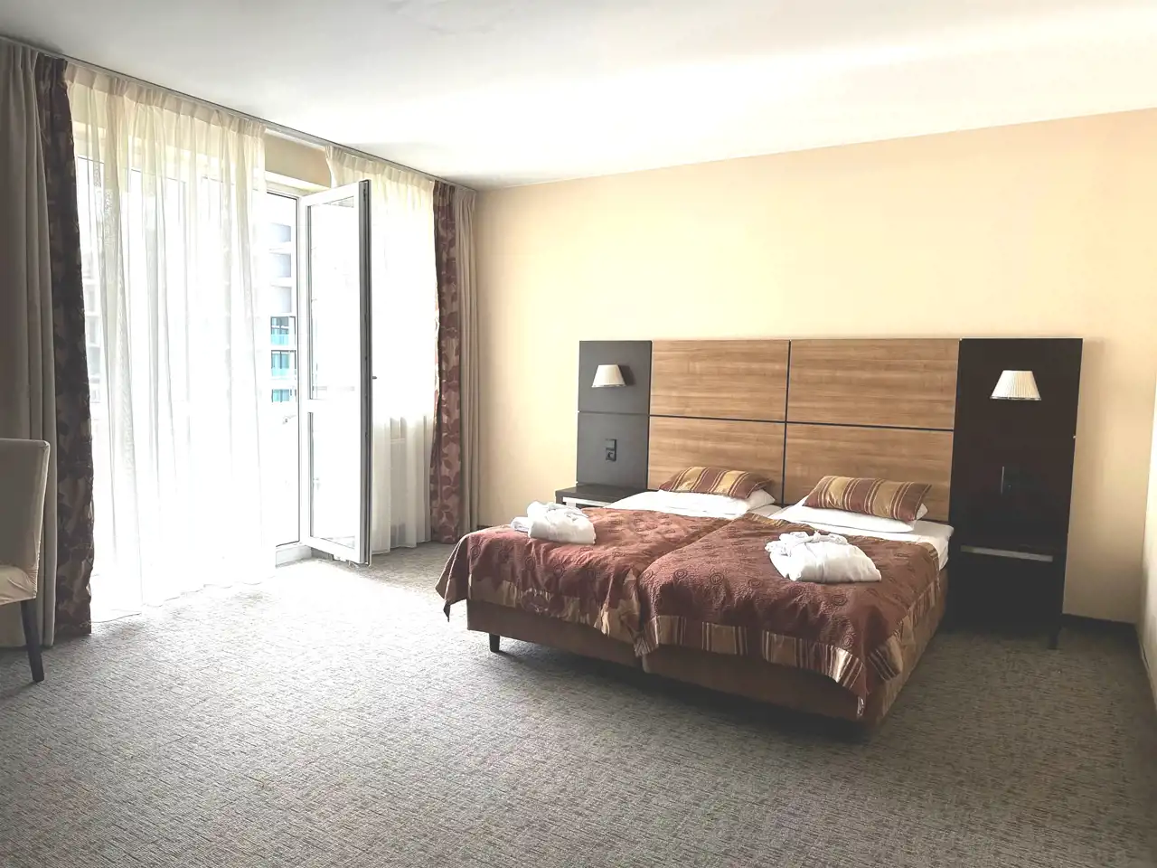 Pokój dwuosobowy z łazienką i opcją dostawki oraz z balkonem.