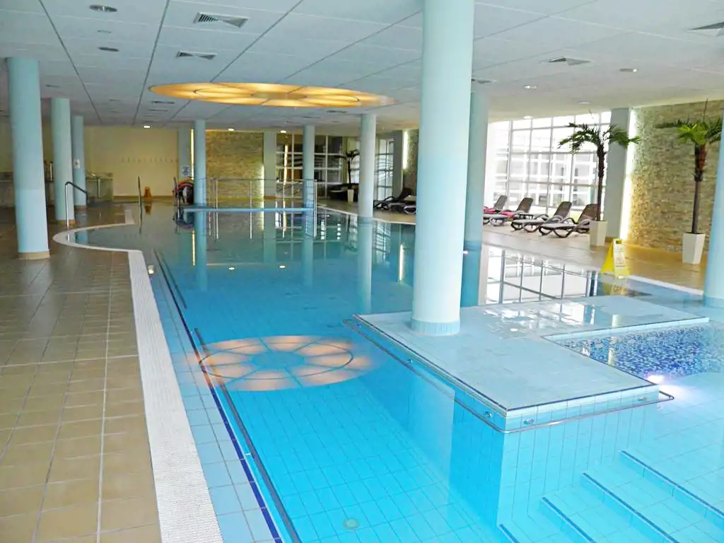 4 piętro wschodni widok, w obiekcie z basenem, spa i restauracją.