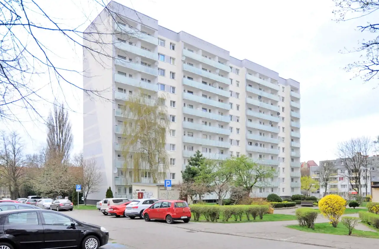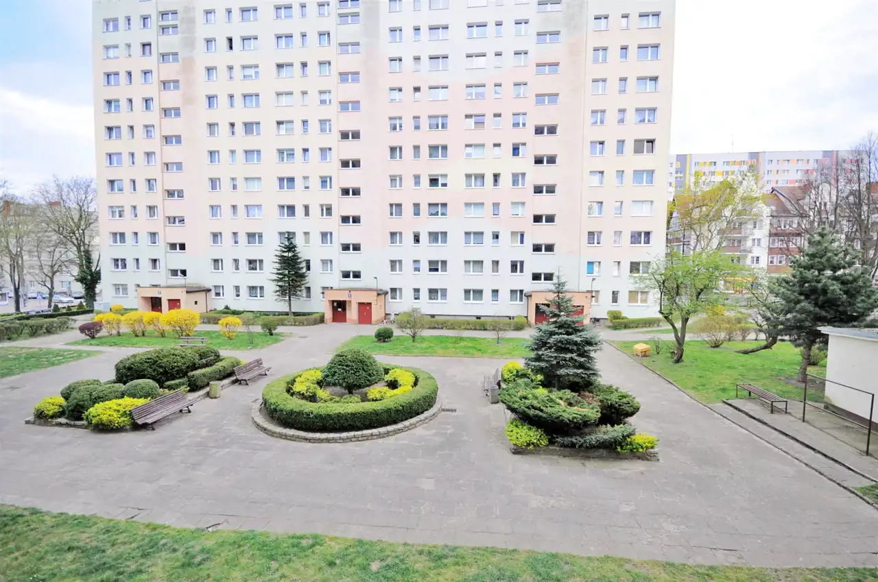 Przed blokiem zadbany teren zielony oraz parking osiedlowy.