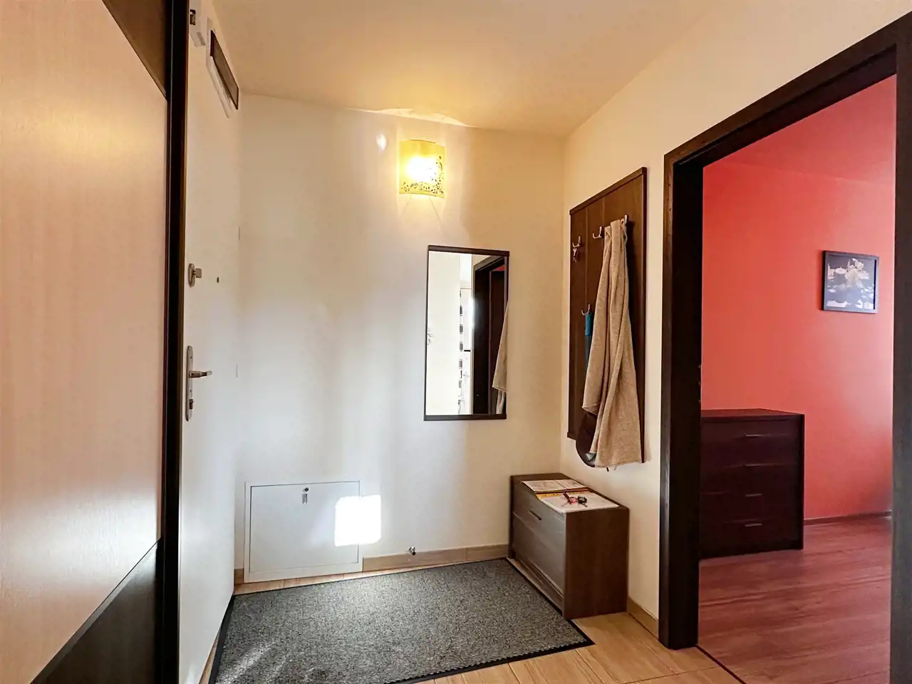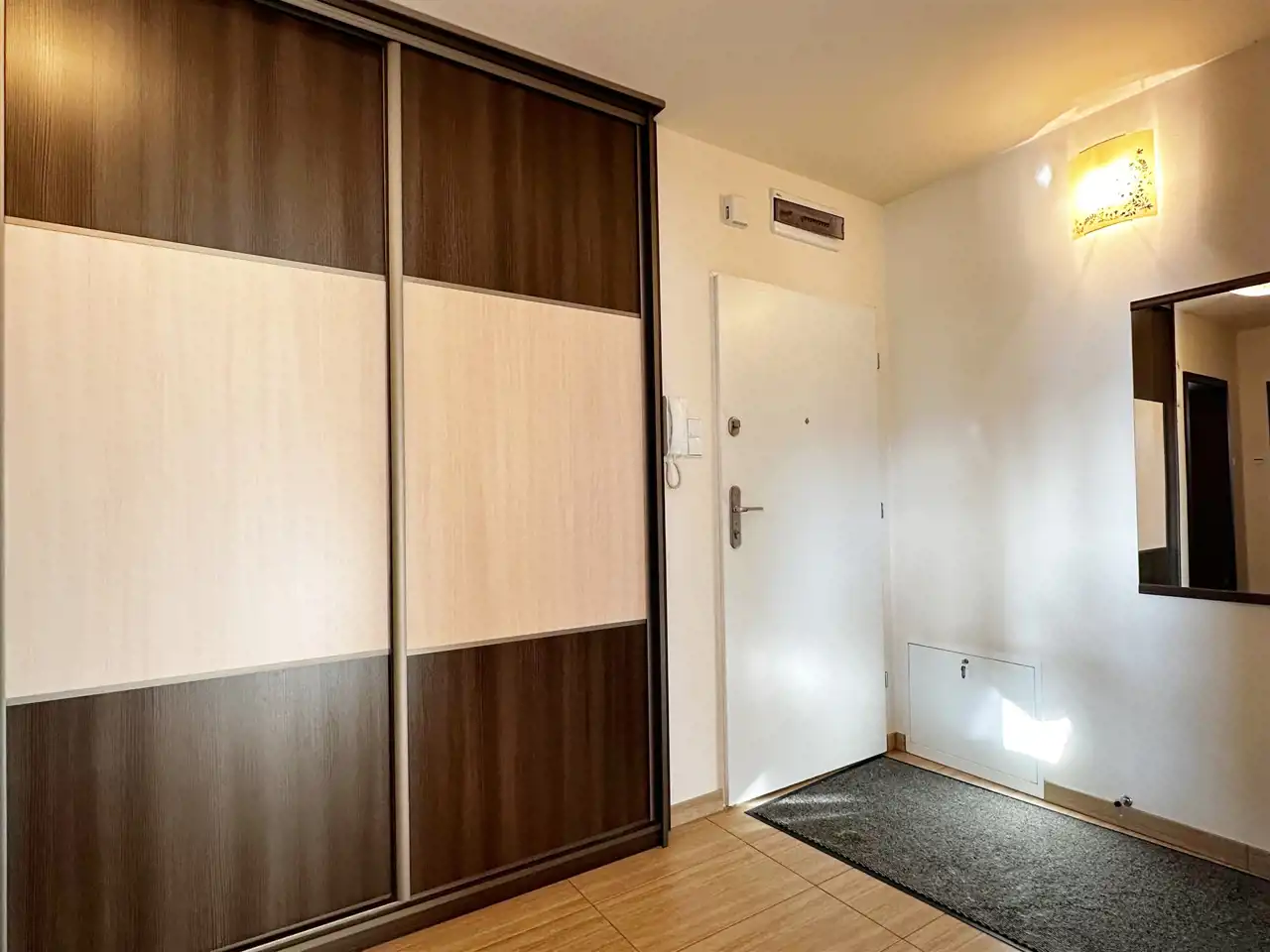 W przedpokoju pojemna szafa w zabudowie. Przynależna komórka lokatorska o powierzchni 2,17 m2.