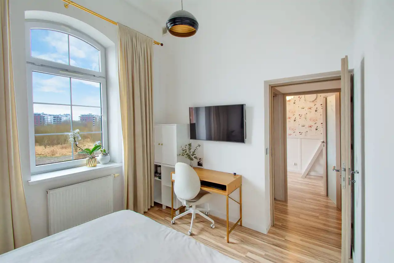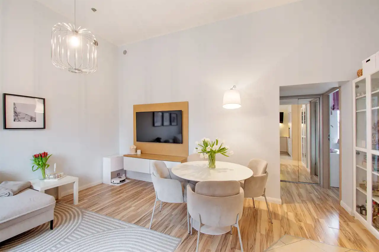 Mieszkanie jest klimatyczne i pełne uroku typowego dla kamienic – wysokie sufity, grube mury oraz dogodny układ pomieszczeń. Świetnie sprawdzi się zarówno dla singla, pary, jak i rodziny.