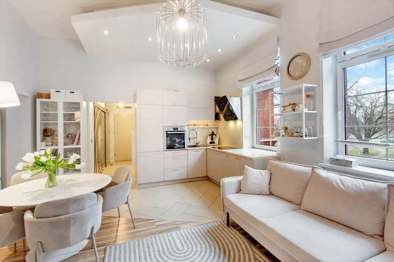 Wnętrze daje wiele możliwości aranżacyjnych – można urządzić je w stylu nowoczesnym lub podkreślić jego historyczny charakter.