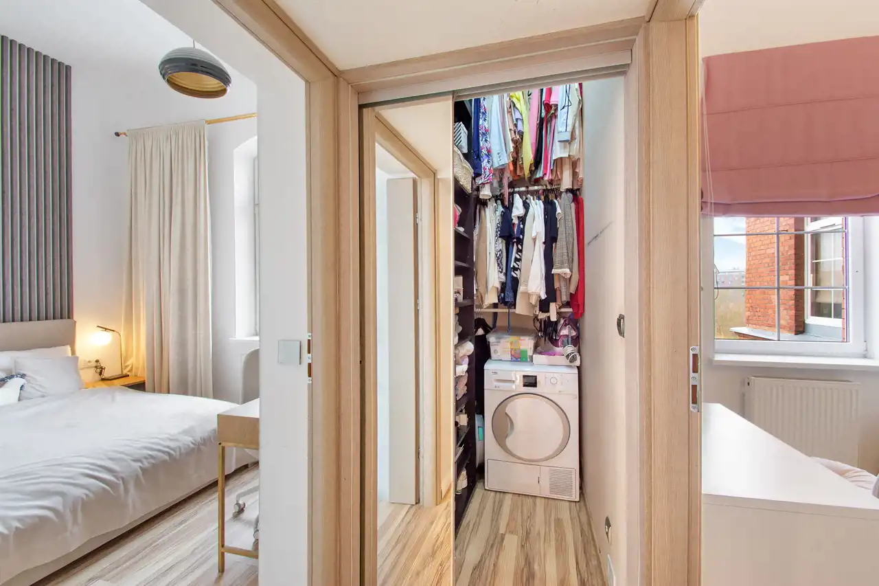 garderoba – rzadko spotykane rozwiązanie przy tym metrażu,