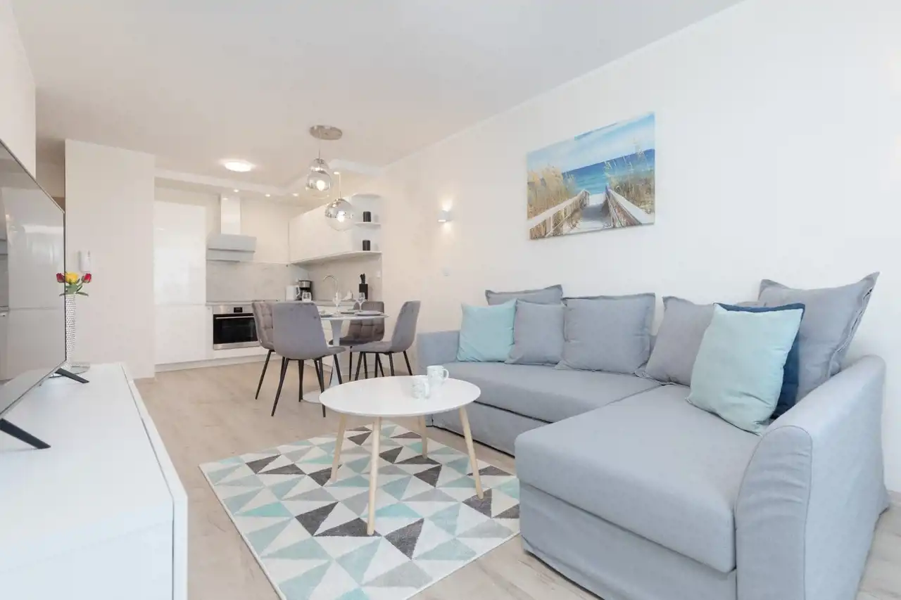 Doskonała lokalizacja kompleksu 3-piętrowych budynków zapewni spokojny wypoczynek a jednocześnie pozwoli w kilka minut dotrzeć do plaży, portu czy miejskiej infrastruktury. Wyjątkowy charakter inwestycji zapewnia wspólna przestrzeń zaprojektowana na przestronnej działce z myślą o odpoczynku. Dla mieszkańców przewidziano strefę relaksu z różnorodną roślinnością, plac zabaw dla dzieci i odkryty basen z brodzikiem (podgrzewany pompą ciepła).