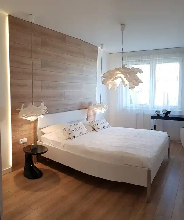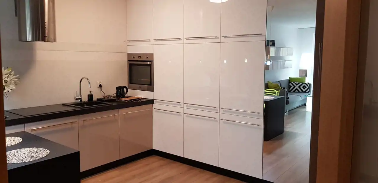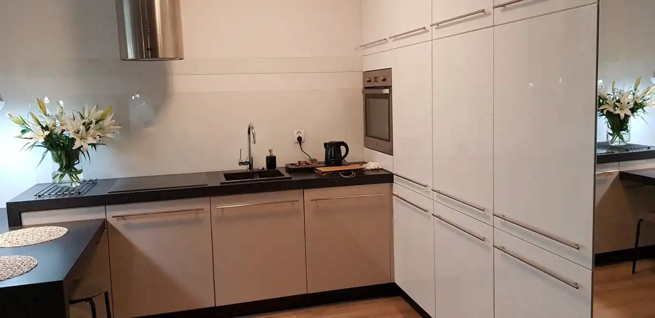 Wykończenie w wysokim standardzie. Meble kuchenne na wymiar z sprzętem AGD firmy Beko: płyta indukcyjna, piekarnik, zmywarka, chłodziarko-zamrażarka. Na ścianach gładzie, wypłytkowana łazienka, podłogi wyłożono panelami, zamontowano domofon. Stan lokalu zgodny z załączonymi zdjęciami. Ogrzewanie miejskie, ekspozycja okien zachodnia. W cenie nieruchomości stała zabudowa. Część wyposażenia do uzgodnienia (stoliki nocne, toaletka, lampa podłogowa).