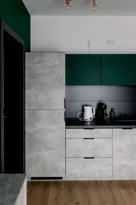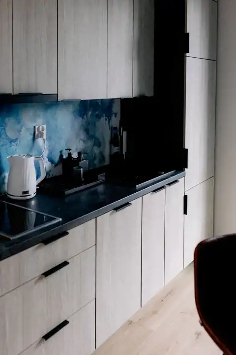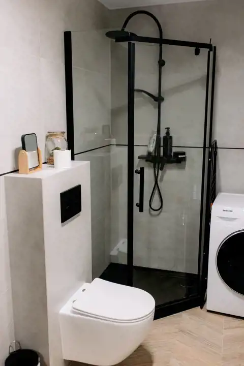 W łazienkach pralko-suszarki, kuchnia w zabudowie, płyta indukcyjna, zmywarka, lodówka.