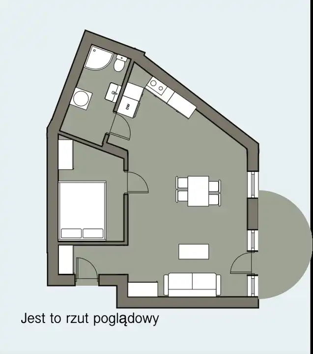 - Charakterystyka mieszkania 41.7 m2, 2 pokoje