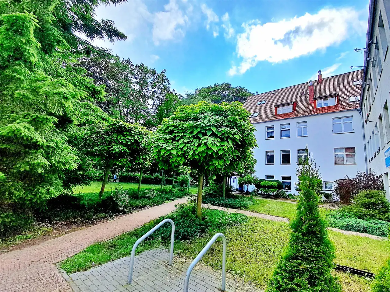 Lokal położony na bardzo wysokim parterze (wysokość I piętra) w otoczeniu zieleni.