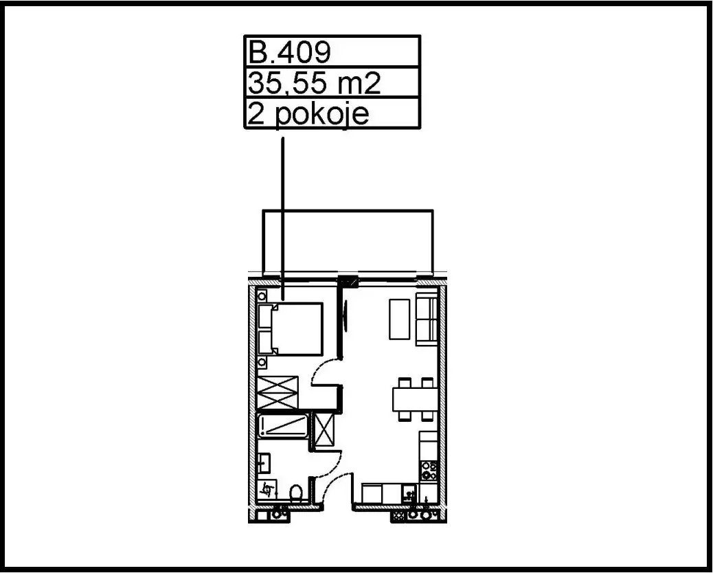 - Charakterystyka mieszkania 35.55 m2, 2 pokoje