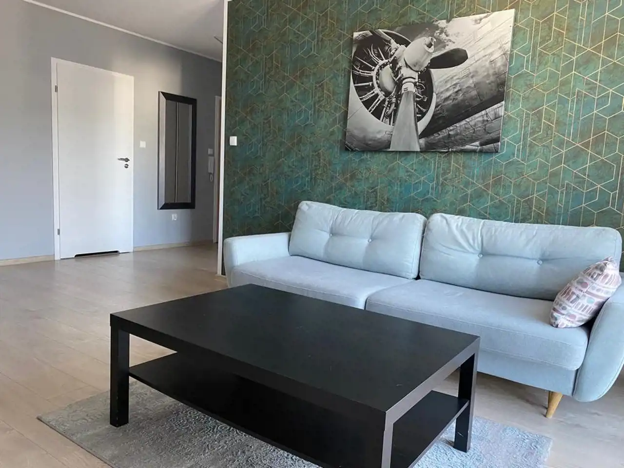 Apartament znajduje się na IV piętrze, dysponuje powierzchnią użytkową 42,64 m2 (całkowitą około 45 m2) oraz dużym tarasem (około 8 m2), składa się z salonu z aneksem kuchennym, sypialni, łazienki z WC. Ekspozycja okien zachodnia. Kompletne umeblowanie i pełne wyposażenie do wynajmu. Wiele ogólnodostępnych miejsc parkingowych na terenie całego osiedla.