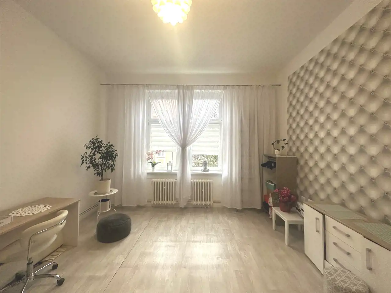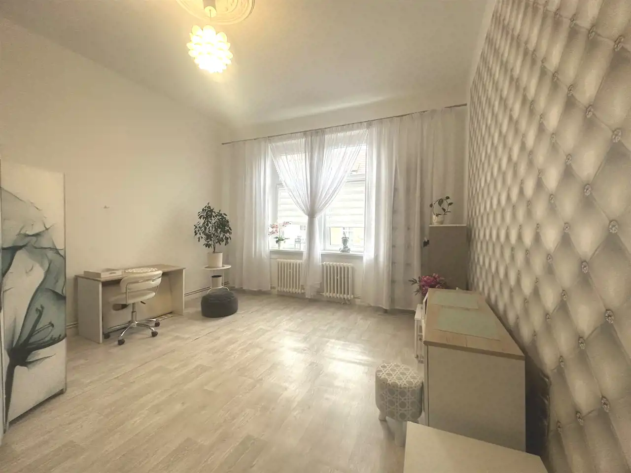 Wysokie i jasne, z nowymi oknami i sztukaterią,