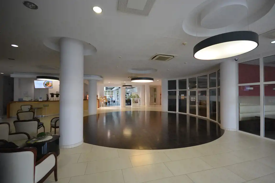 W hotelu przystosowanym do potrzeb osób niepełnosprawnych znajdują się cztery szybkobieżne windy, całodobowa recepcja oraz lokale handlowe.