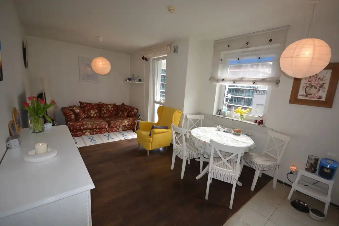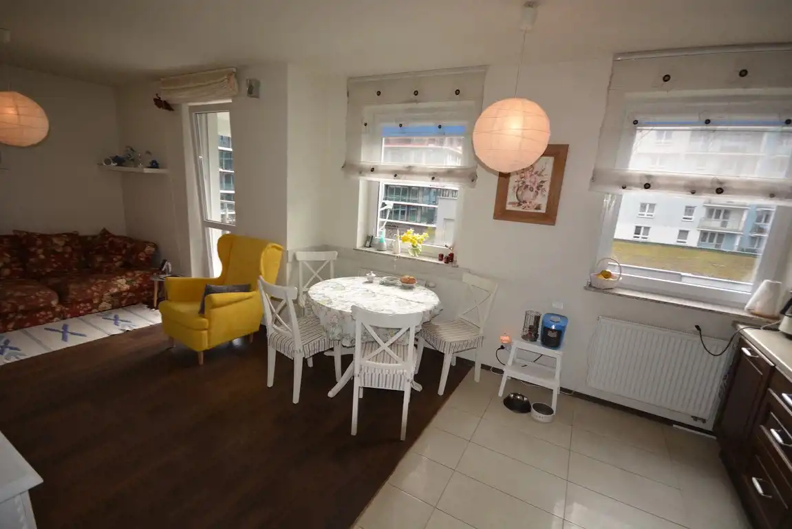 Na podłogach panele i terakota, gładź gipsowa na ścianach, wypłytkowana łazienka. Drzwi wejściowe antywłamaniowe, obszerne szafy typu komandor w przedpokoju (dwie) i sypialni. Apartament sprzedawany z pełnym wyposażeniem i umeblowaniem (oprócz komody z pokoju dziennego). Apartament posiada internet, tv kablową, instalację przeciwpożarową. Nieruchomość idealna dla osób pragnących posiadać własny apartament nad morzem jak również dochodowa inwestycja pod wynajem sezonowy i całoroczny.