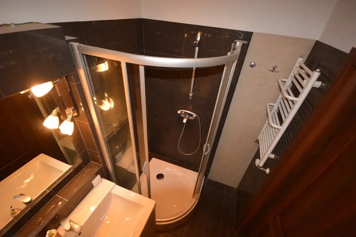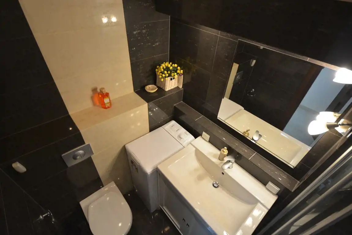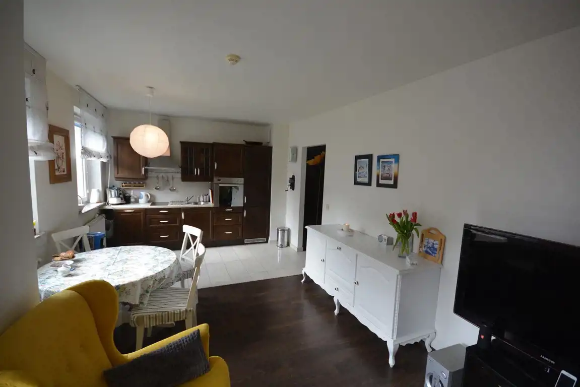 - salonu z aneksem kuchennym (płyta i piekarnik Gorenje, zmywarka Bosch, chłodziarko-zamrażarka),