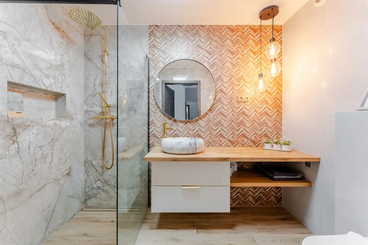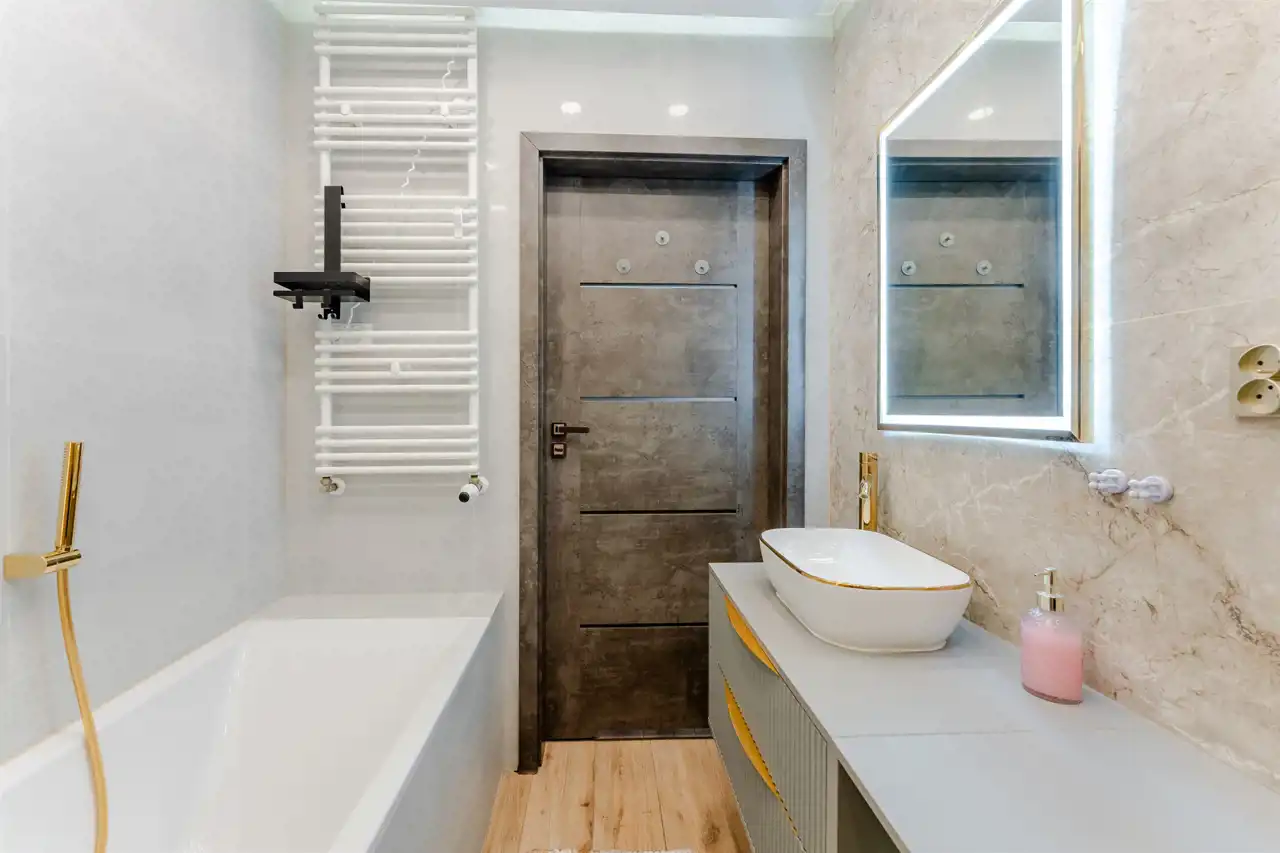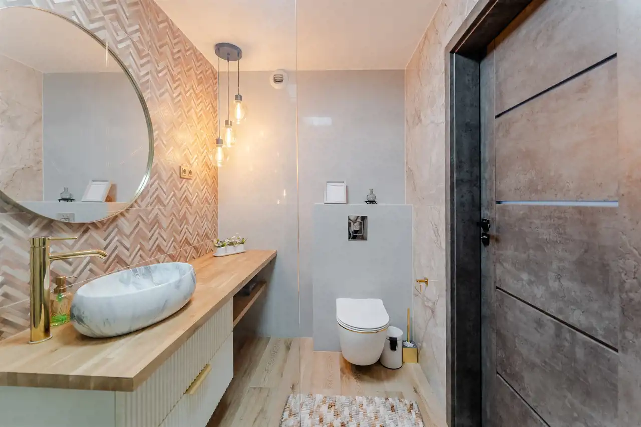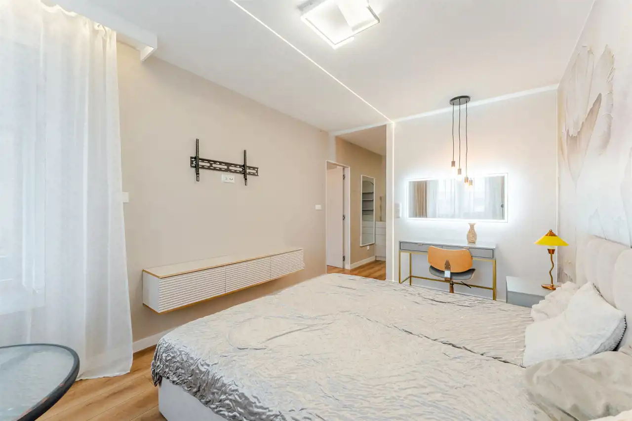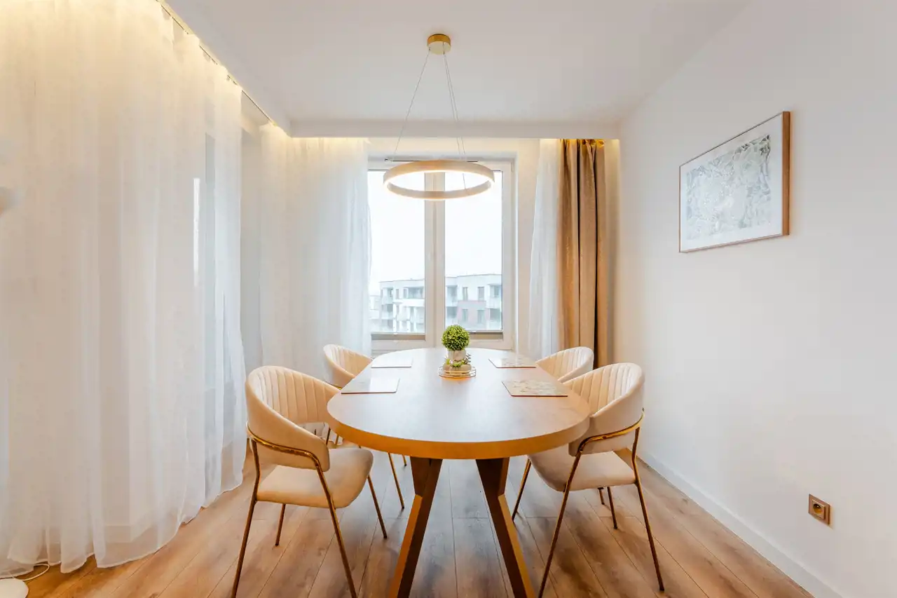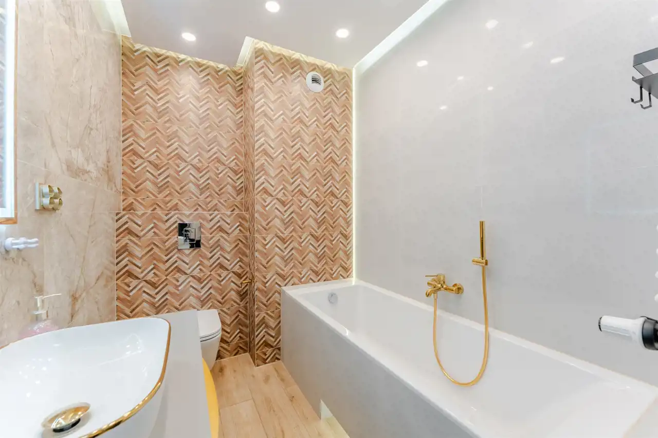 Na sprzedaż elegancki apartament w nowoczesnym budynku z windą, położony na ostatnim piętrze. Nieruchomość wykończona w spójnym, designerskim stylu. Złote detale, drewno, wielkoformatowe płytki, nastrojowe oświetlenie LED. To wnętrze robi efekt „wow” od pierwszego kroku.
