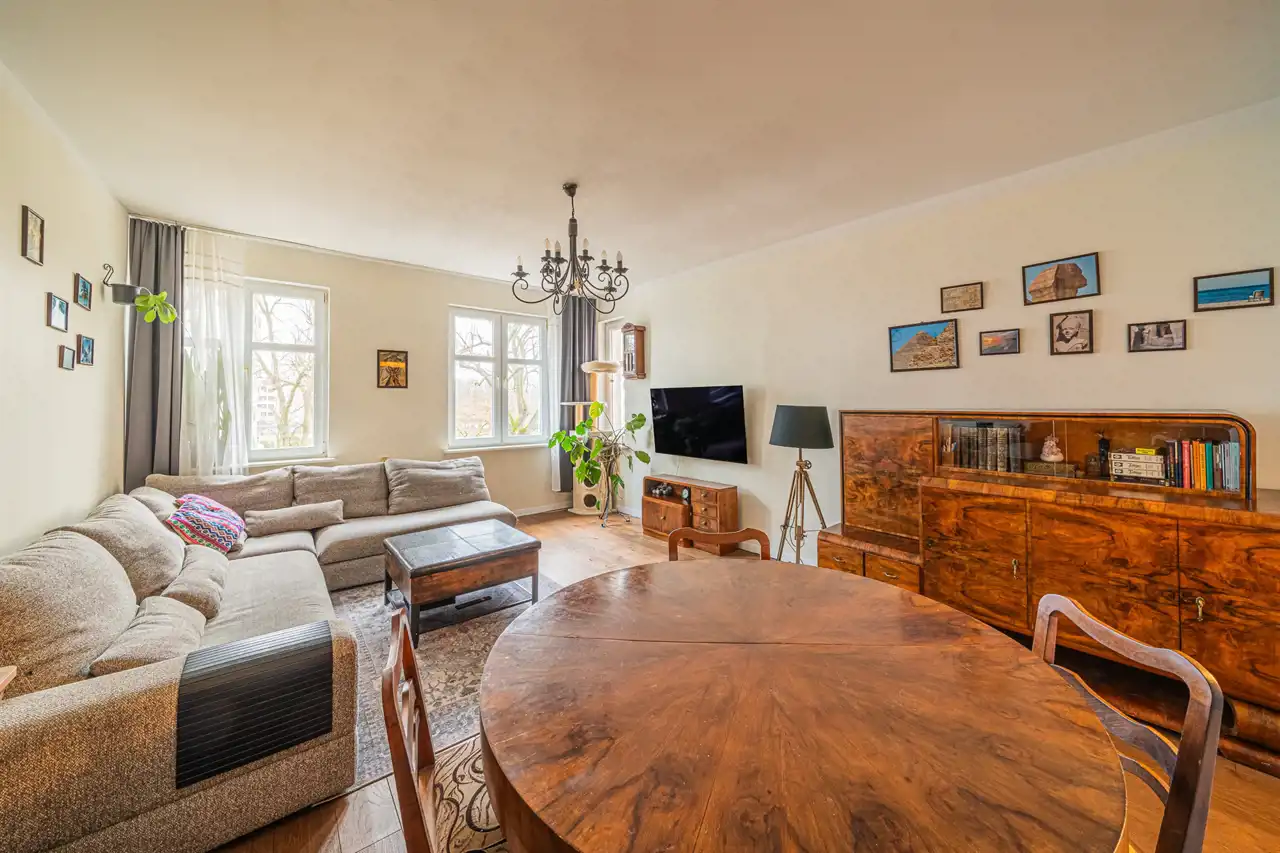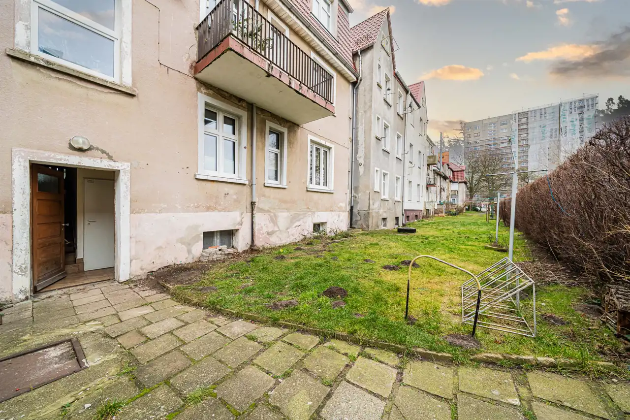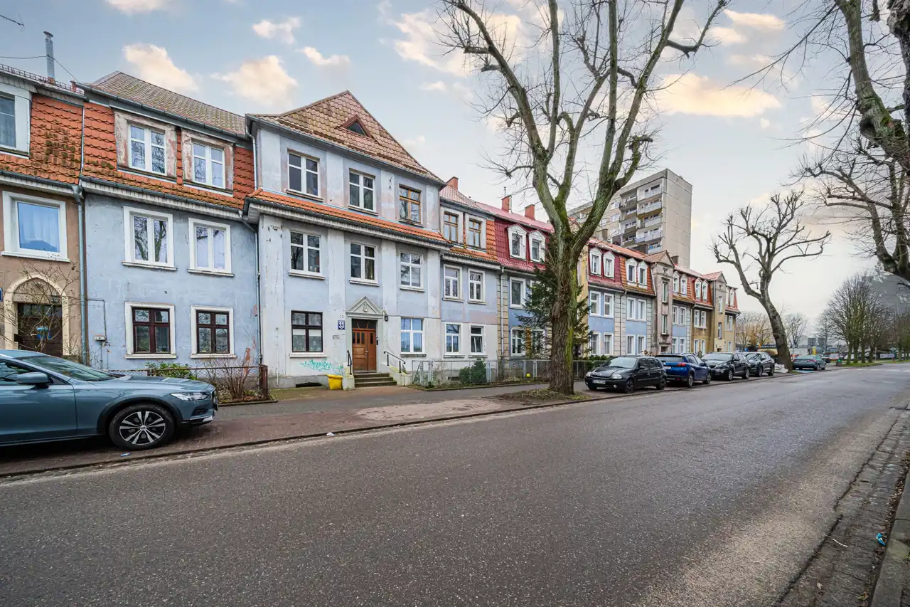 Lokal mieszkalny o pow. 87 mkw. znajdujący się na drugim piętrze w kamienicy, zbudowany z cegły, z szybkim dostępem do portu, miasta, szpitali oraz morza.