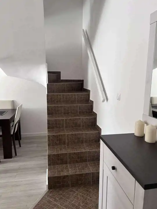 Dwupoziomowy układ zapewnia wygodny podział na strefę dzienną na dole oraz bardziej prywatną część na górze, co znacząco podnosi komfort codziennego życia.