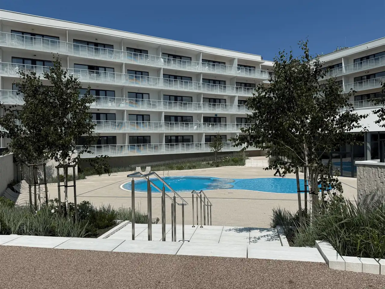 - Luksusowe udogodnienia dla mieszkańców: basen zewnętrzny i wewnętrzny, strefa SPA, plac zabaw, siłownia, jacuzzi, sauna