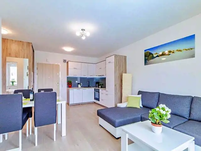 Do wynajęcia bardzo atrakcyjny, 2 pokojowy apartament mieszczący się na prestiżowym osiedlu FENIKS, 5 minut spacerkiem do plaży.