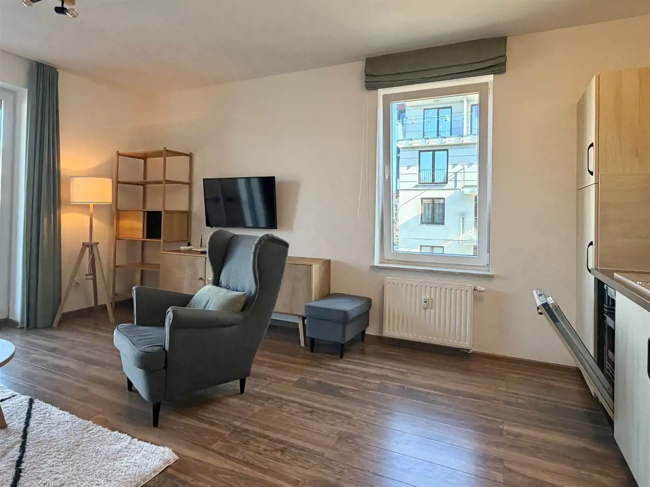 Z salonu wyjście na balkon.