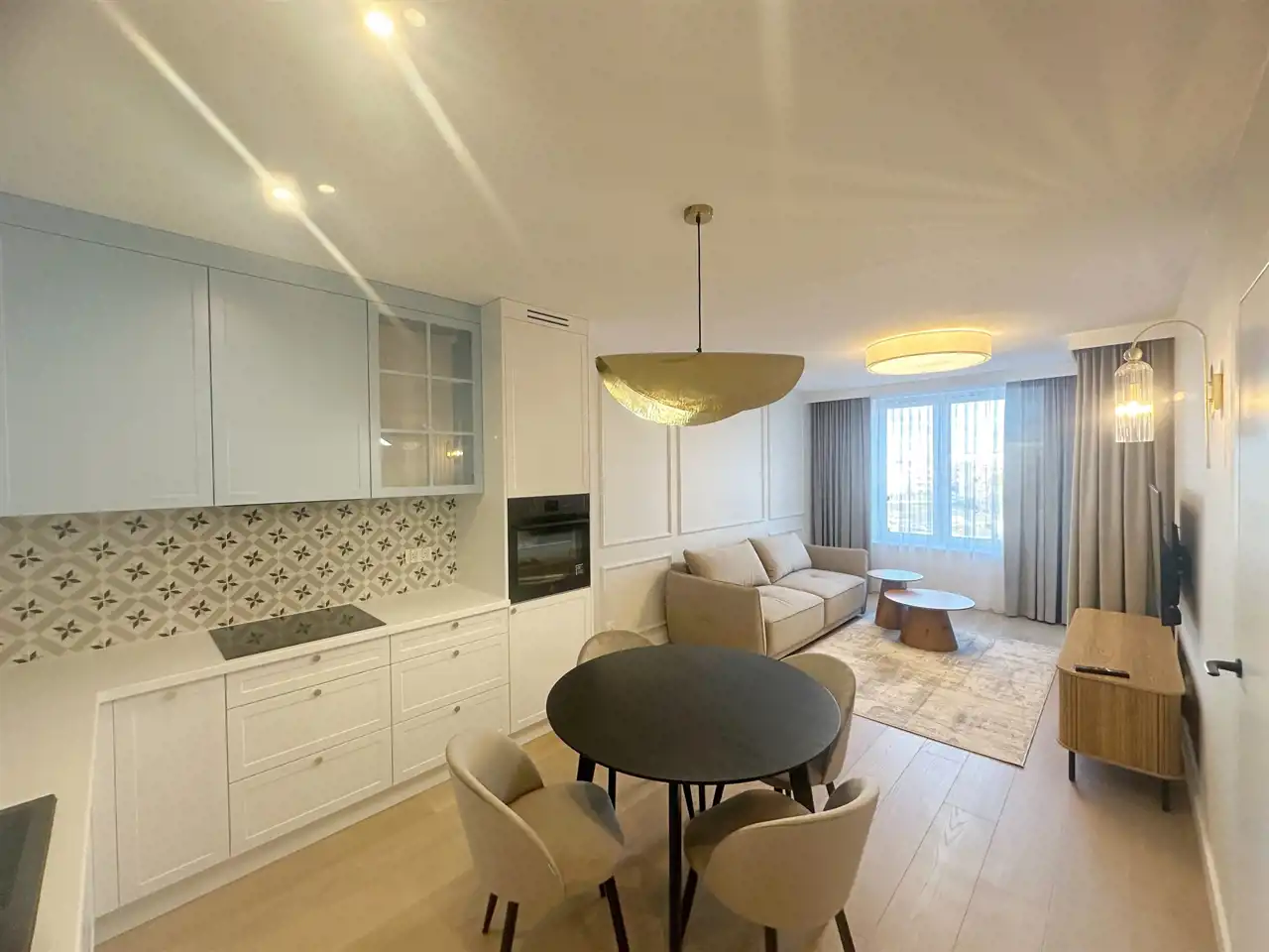 Przyjemnie i gustownie urządzone wnętrza z ładnymi lampami oraz
