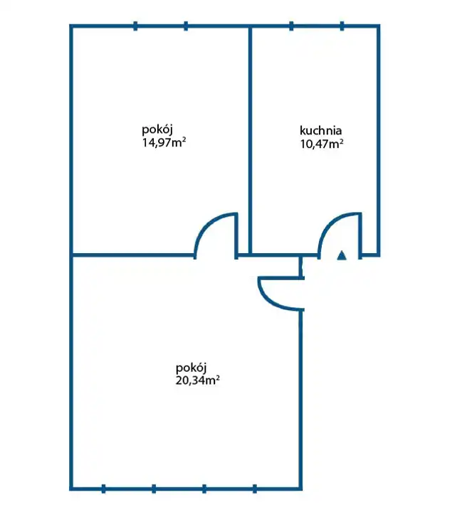 Składa się z dwóch pokoi i kuchni o łącznej powierzchni 45,78 m².
