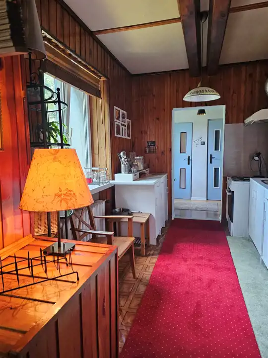 - przestronna kuchnia połączona z jadalnia ( boazeria )( dwa duże okna )