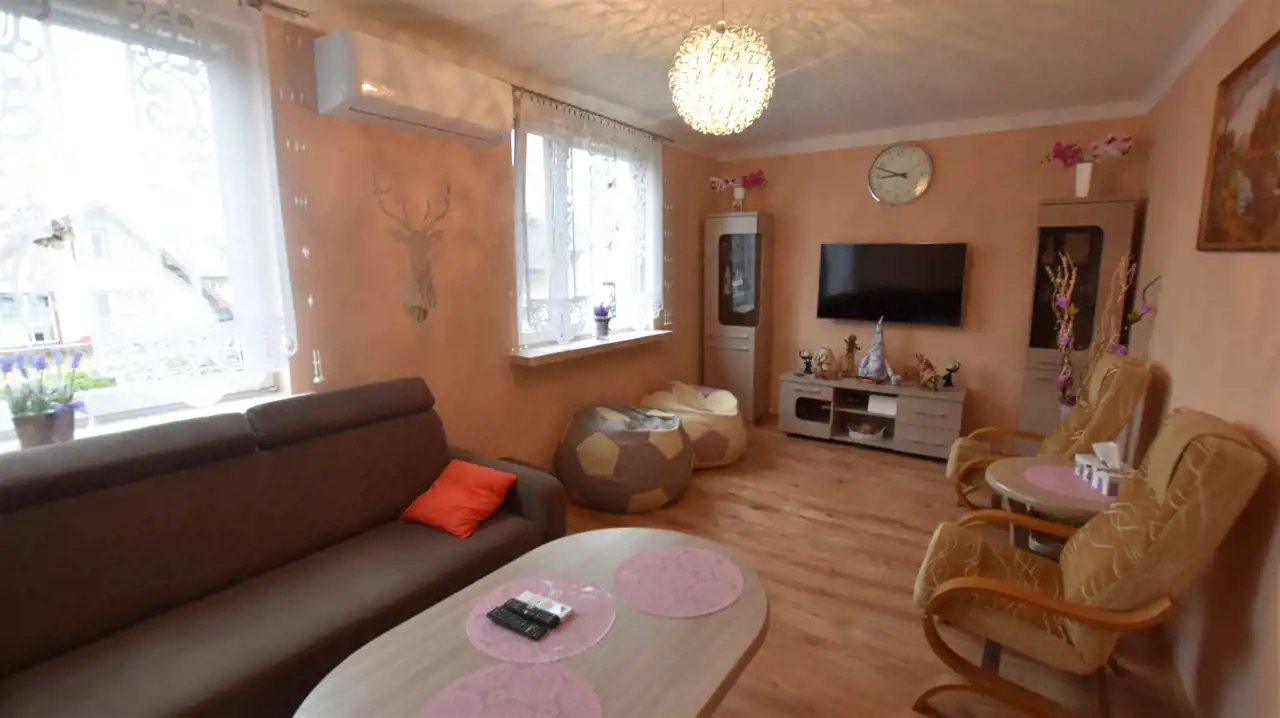 Mieszkanie o pow. użytkowej 48 m2, położone na I piętrze w skład którego wchodzi: kuchnia, sypialnia, salon, łazienka, przedpokój. Każde z pomieszczeń posiada duże okno przez co mieszkanie jest nasłonecznione. Do mieszkania przynależy piwnica oraz pomieszczenie gospodarcze.