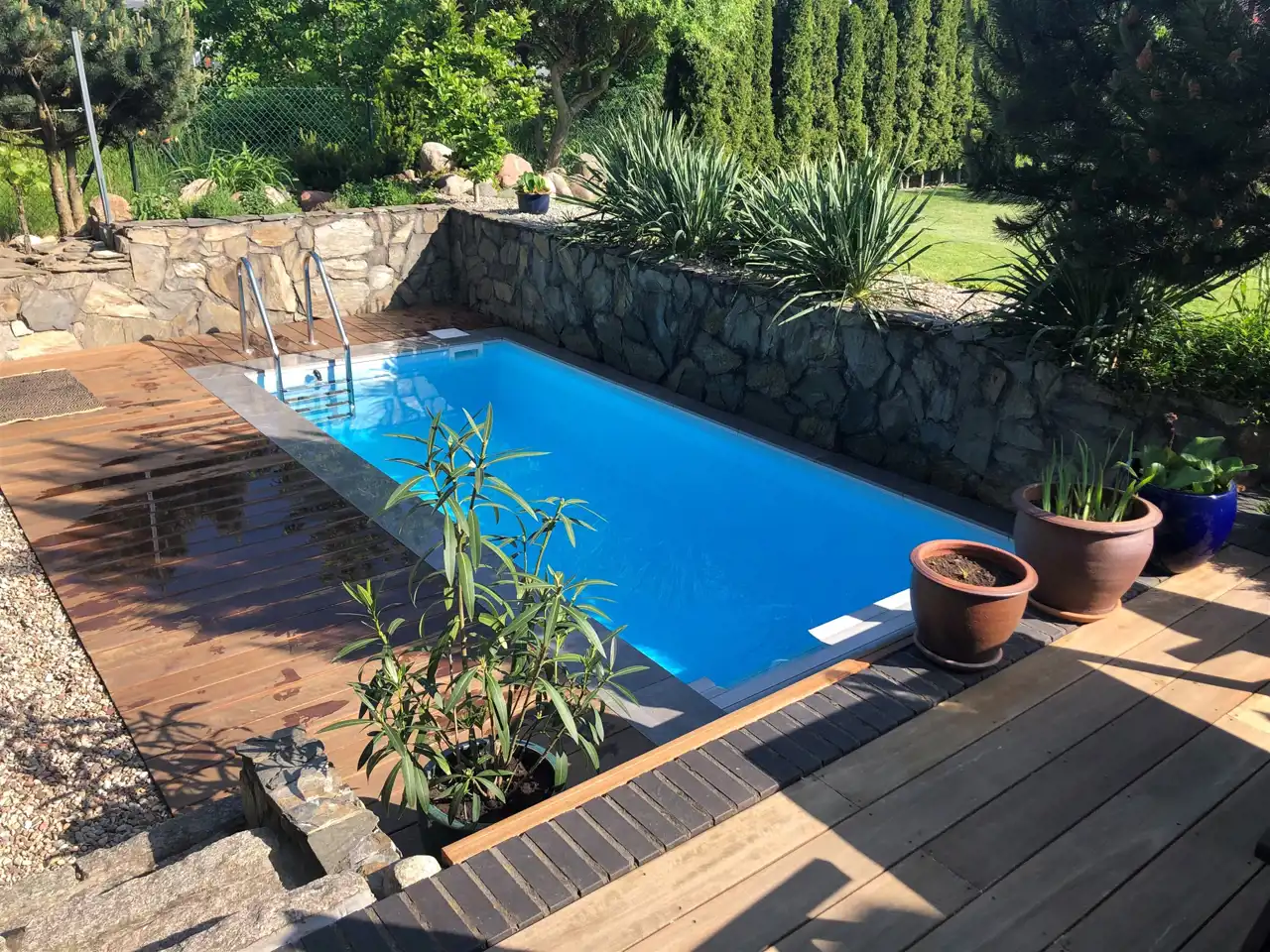 - Basen z przeciwprądem w ogrodzie z prywatną strefą wypoczynkową