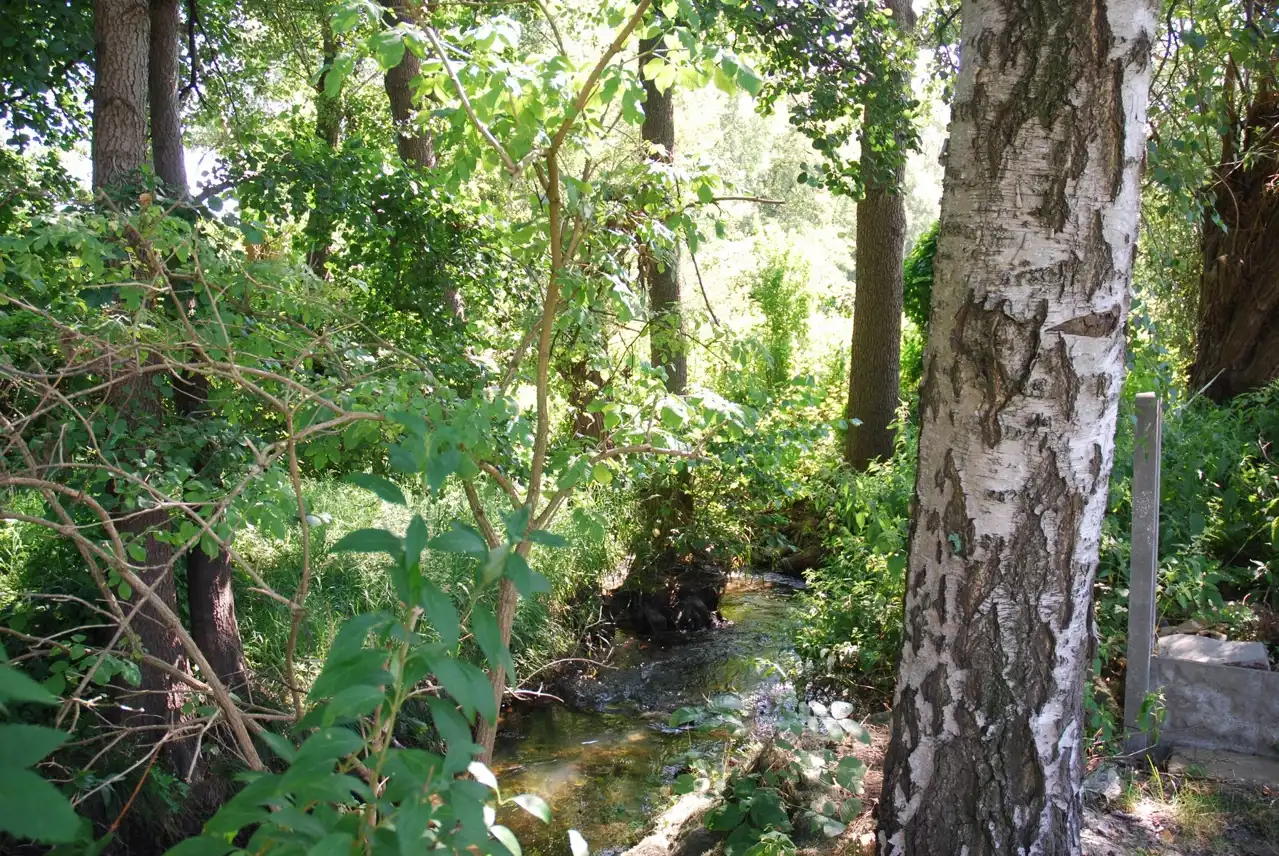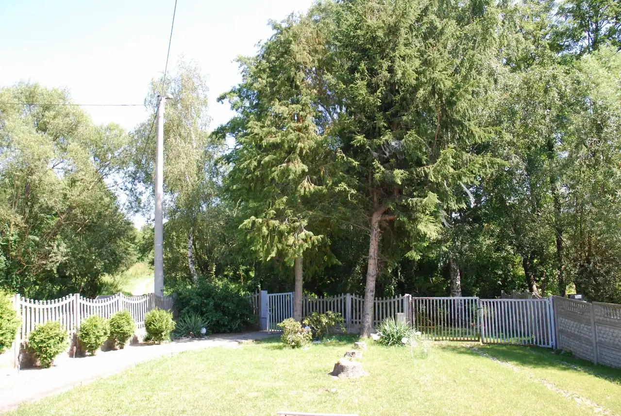 Ogród z nabrzeżem urokliwego potoku i fragmentem własnego zagajnika, z wybudowanym pomieszczeniem gospodarczym.