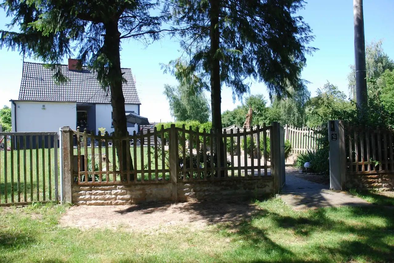 dom z 1960 r., z pozwoleniem na użytkowanie, usytuowany na froncie obszernej działki, która płynnie zlewa się z okolicznymi łąkami i zagajnikami.