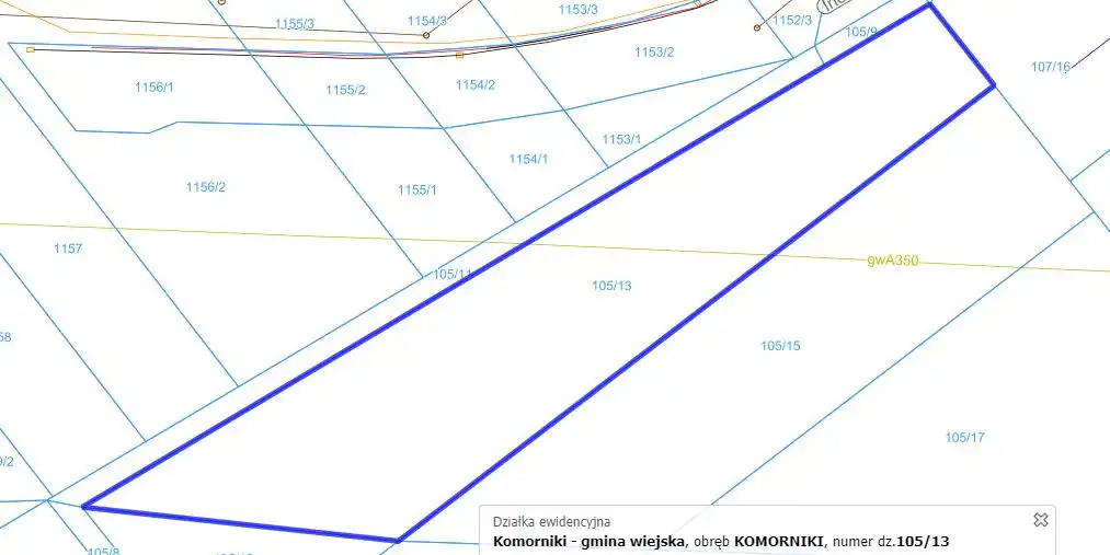 - Gazociąg: Przez działkę przebiega gazociąg gWA 350. Orientacyjny przebieg gazociągu został zaznaczony w dołączonej galerii zdjęć.
