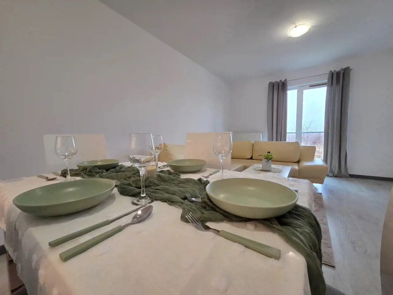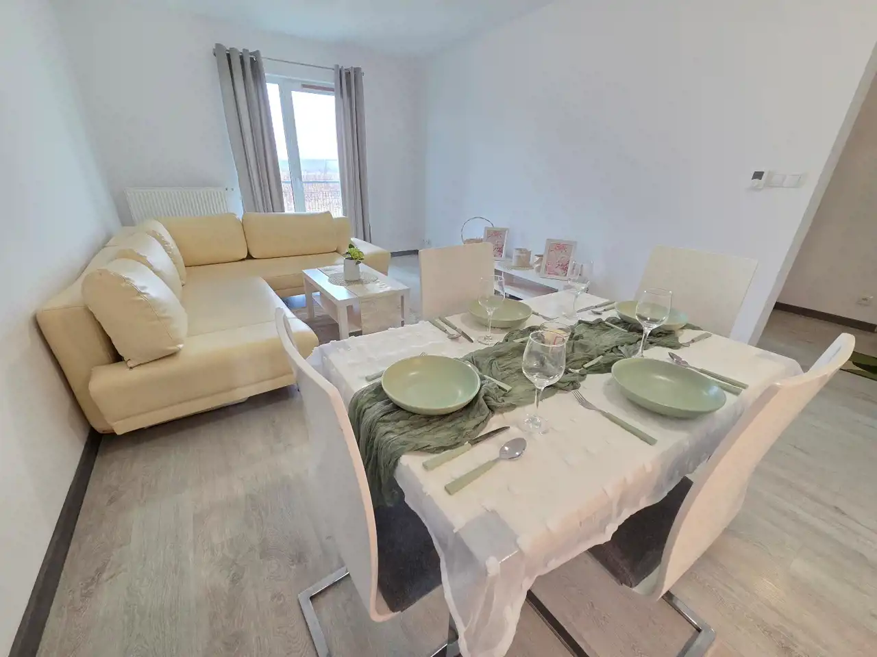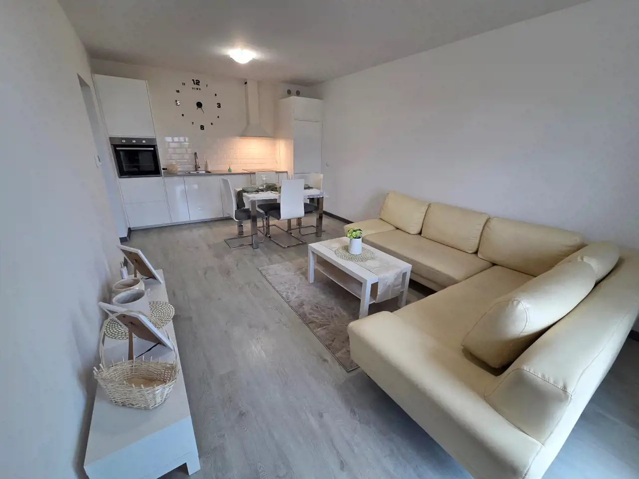 Standard wykończenia: ściany w pokojach i na przedpokoju malowane na biało, na podłogach panele. Aneks kuchenny wyposażony w zabudowę oraz sprzęt AGD (lodówko - zamrażarka, płyta elektryczna, okap, piekarnik, zmywarka). Łazienka razem z wc, wyłożona płytkami ceramicznymi, wyposażona w kabinę prysznicową, umywalkę z szafką, toaletę oraz pralkę automatyczną. Okna PCV, drzwi zewnętrzne i wewnętrzne w okleinie drewnianej. Balkon wyłożony deską drewnianą.