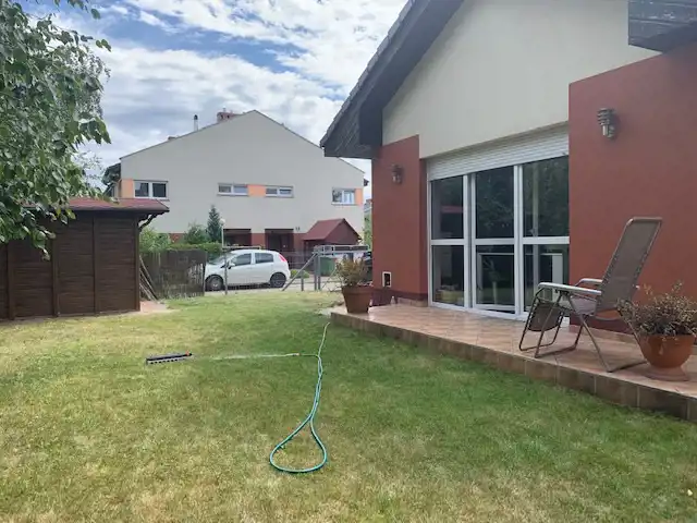 Całość ogrodzona i utrzymana w wielkim smaku. Ogród o powierzchni 173 m2 zadbany i zagospodarowany, z licznymi nasadzeniami. Na ogrodzie słoneczny taras oraz szopka gospodarcza. Ogród posiada odrębny licznik na wodę. Ogród graniczy z zielonym pasem terenu niczym nie zabudowanym. Idealne miejsce na wypoczynek wśród zieleni po ciężkim dniu pracy.