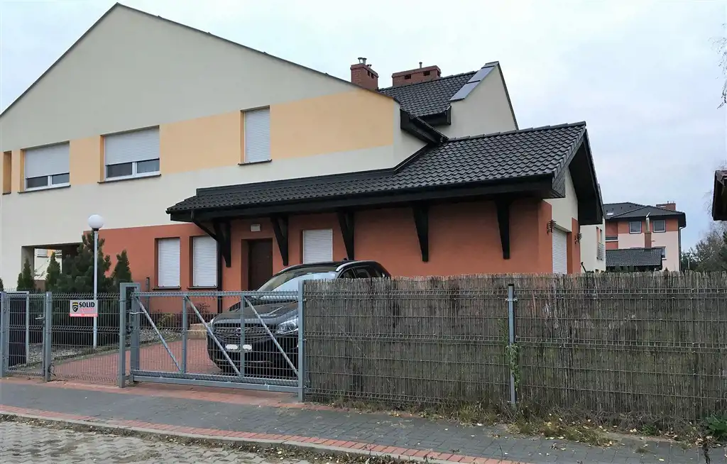 Dojazd do nieruchomości odbywa się drogą z kostki brukowej. Chodnik oraz teren od frontu domu wyłożony kostką brukową. Nieruchomość w całości ogrodzona. Ogrodzenie, furka, brama wjazdowa wykonane z panela ogrodzeniowego.