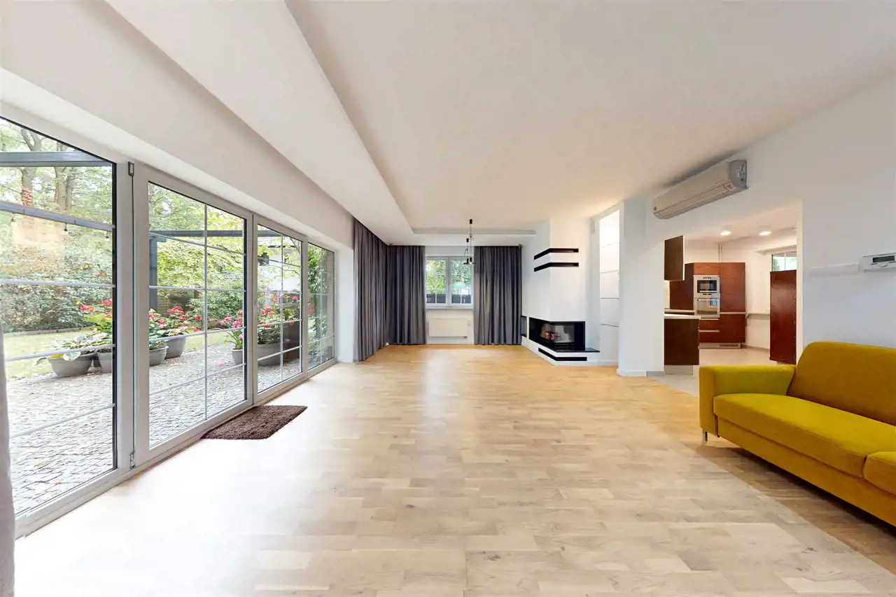 - przestronny salon z kominkiem i bezpośrednim wyjściem do ogrodu.