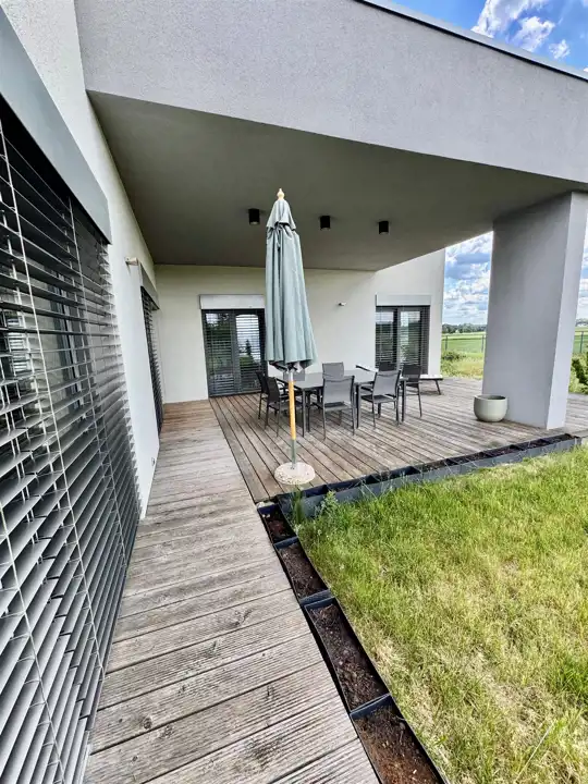 Ekologiczna i oszczędna pompa ciepła – zapewnia niskie koszty eksploatacji i wysoki komfort cieplny. Nieruchomość została zaprojektowana z myślą o funkcjonalności i estetyce – idealna dla osób ceniących przestrzeń, nowoczesny styl życia i komfort życia w harmonii z naturą.