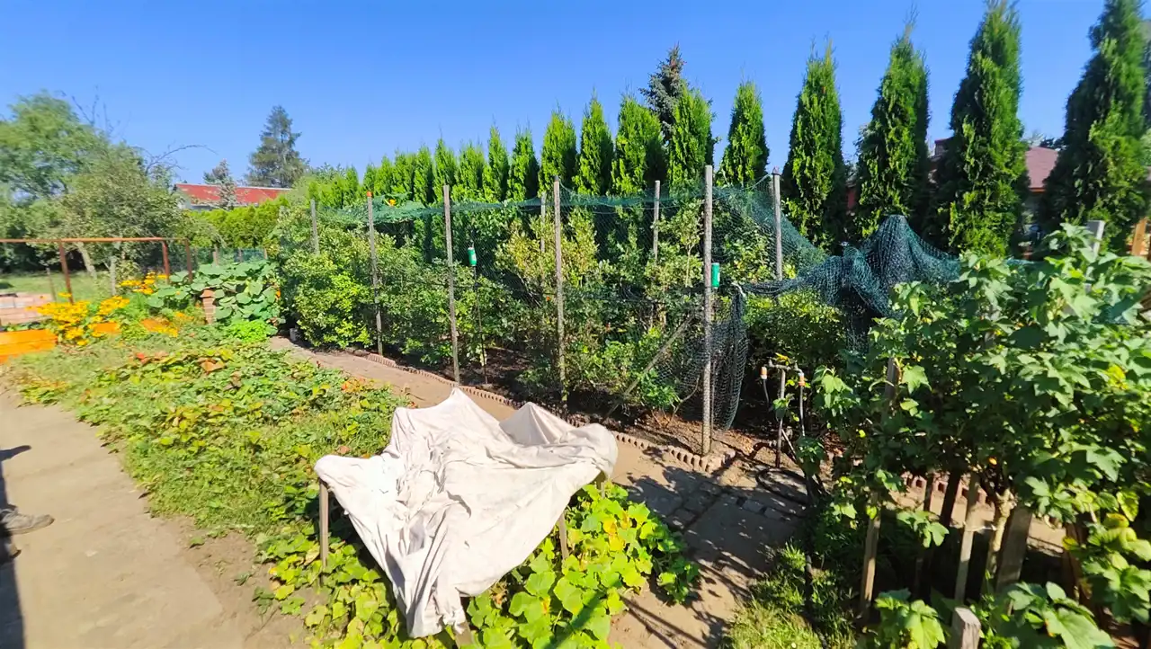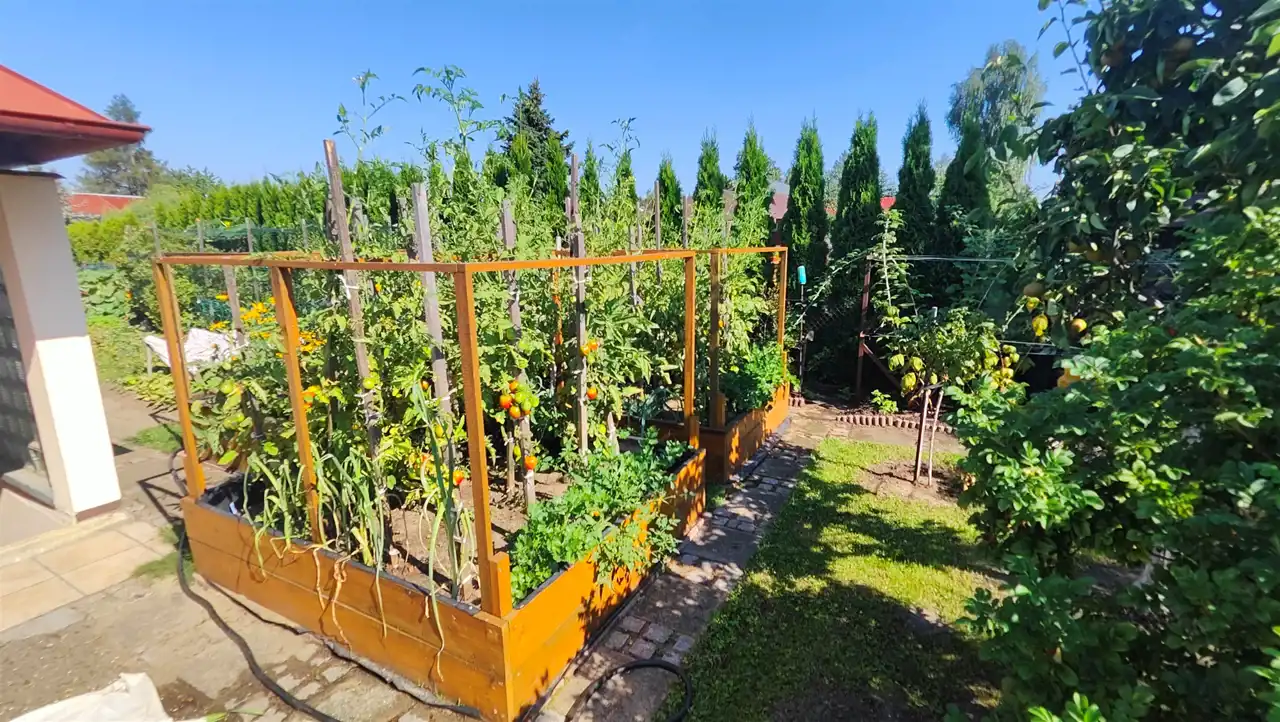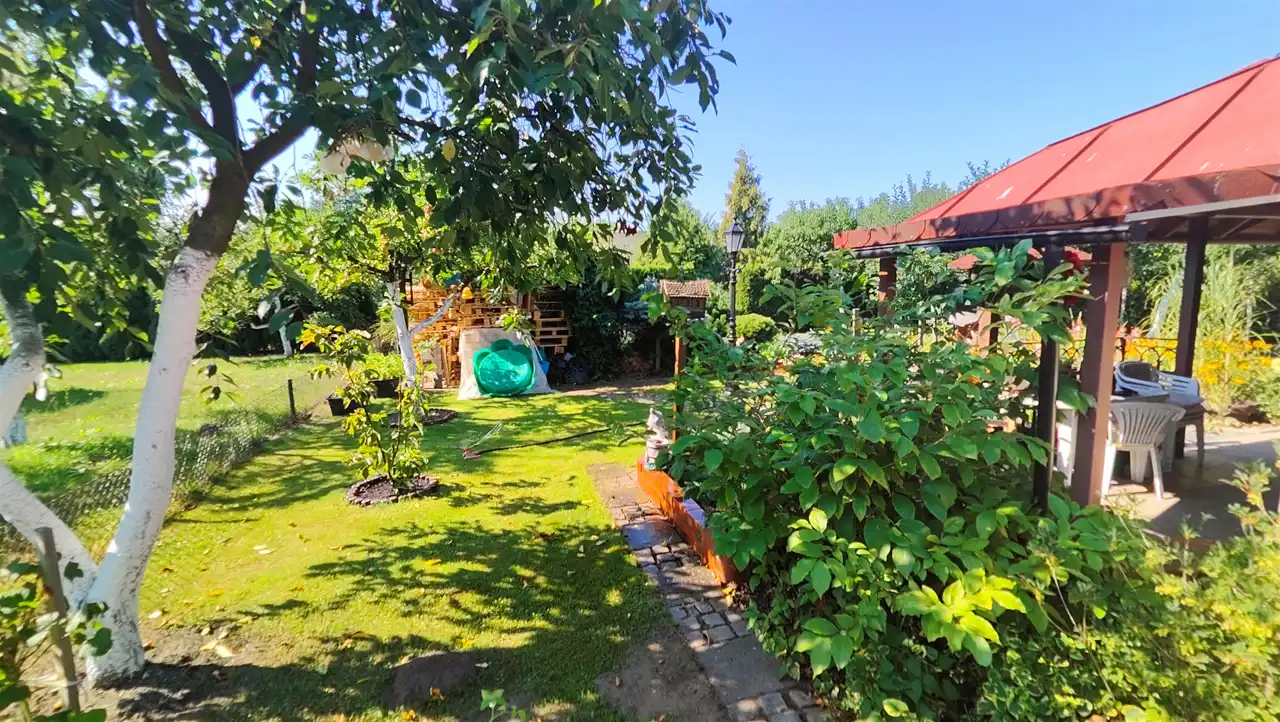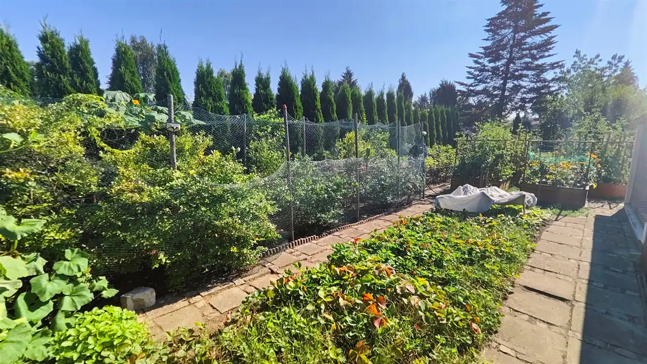 Działka ogrodzona, o łącznej powierzchni ponad 10 arów, funkcjonalnie podzielona na dwie części: ogrodową, uprawną oraz stricte relaksacyjną.
