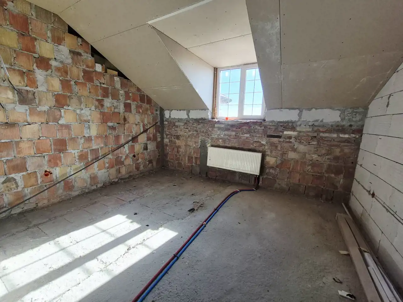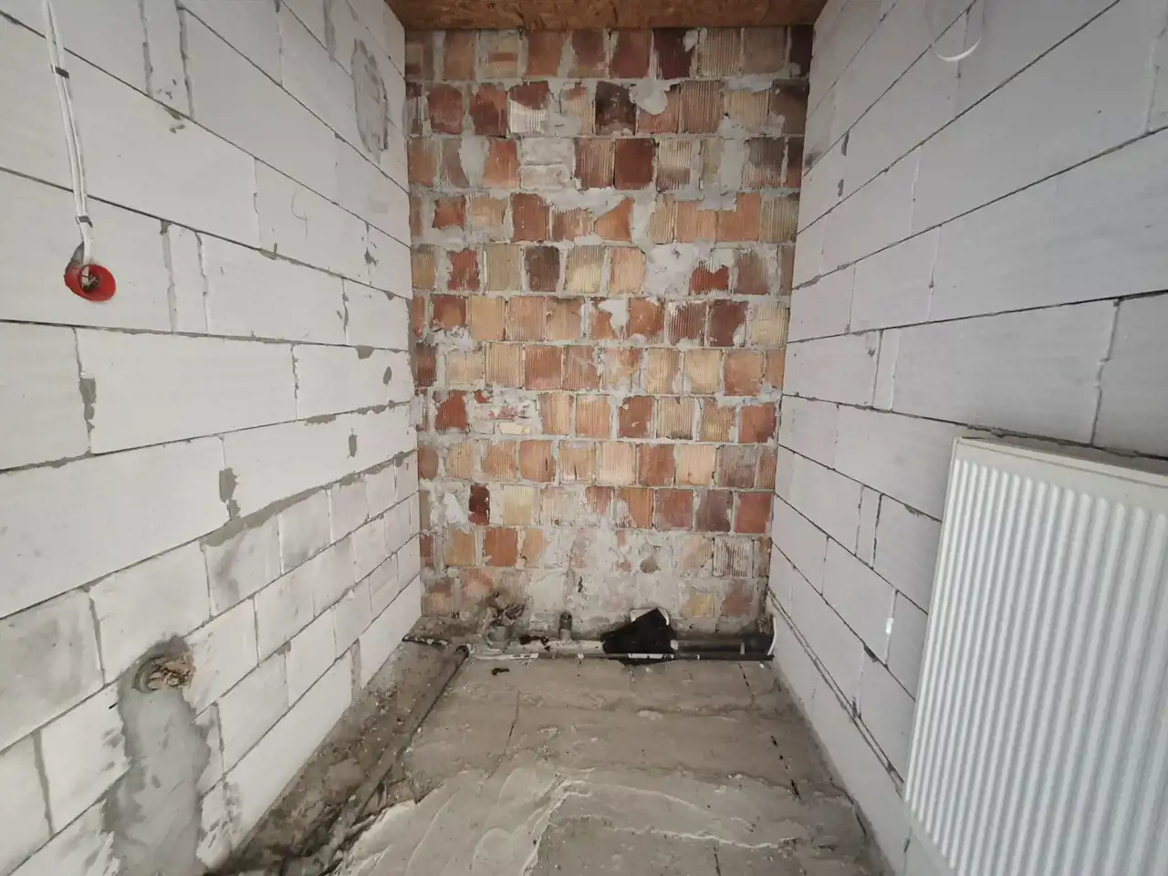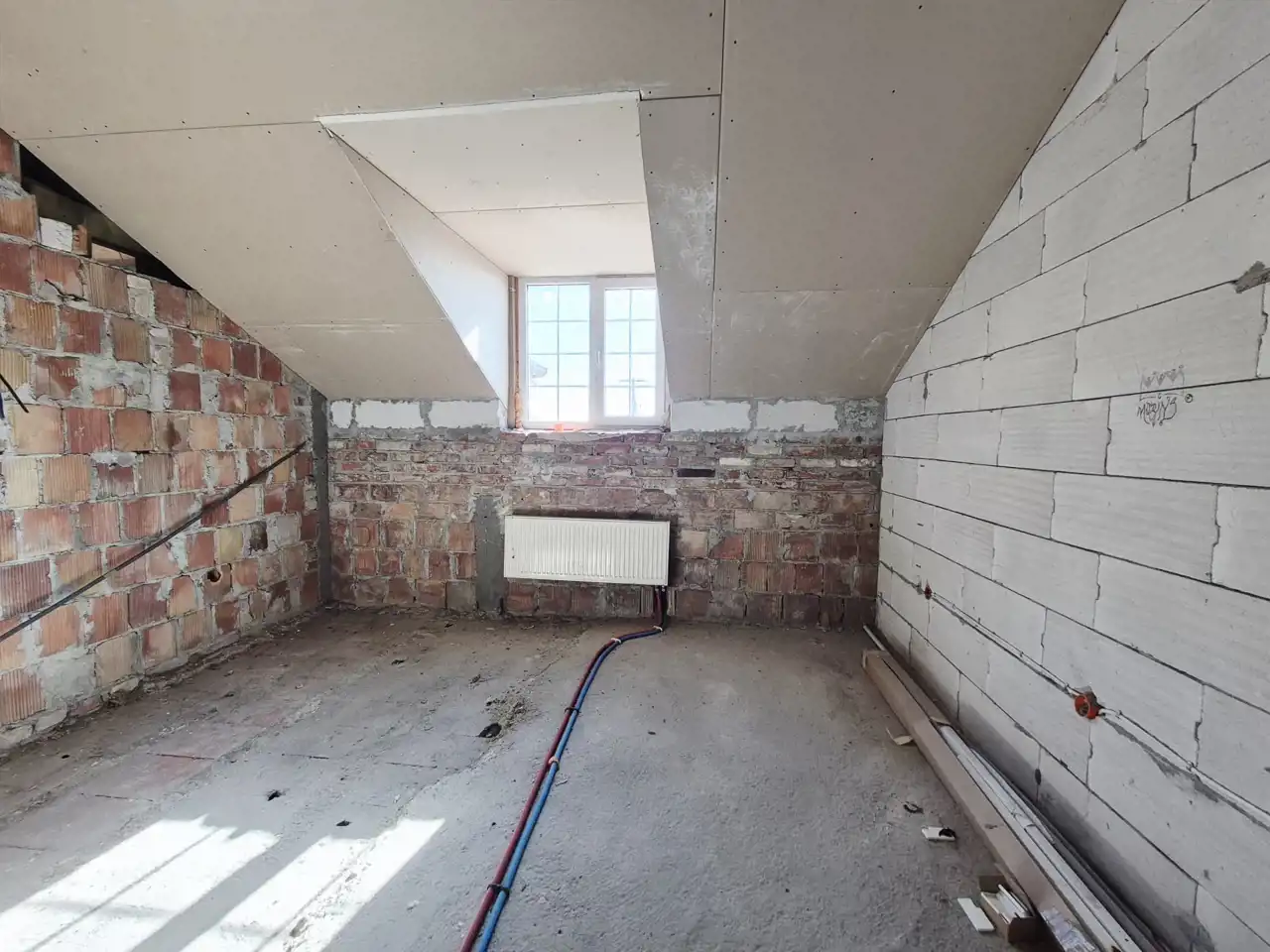 - Ściany z czerwonej cegły, ocieplone warstwą 15 cm styropianu, gwarantują doskonałą izolację termiczną i akustyczną,