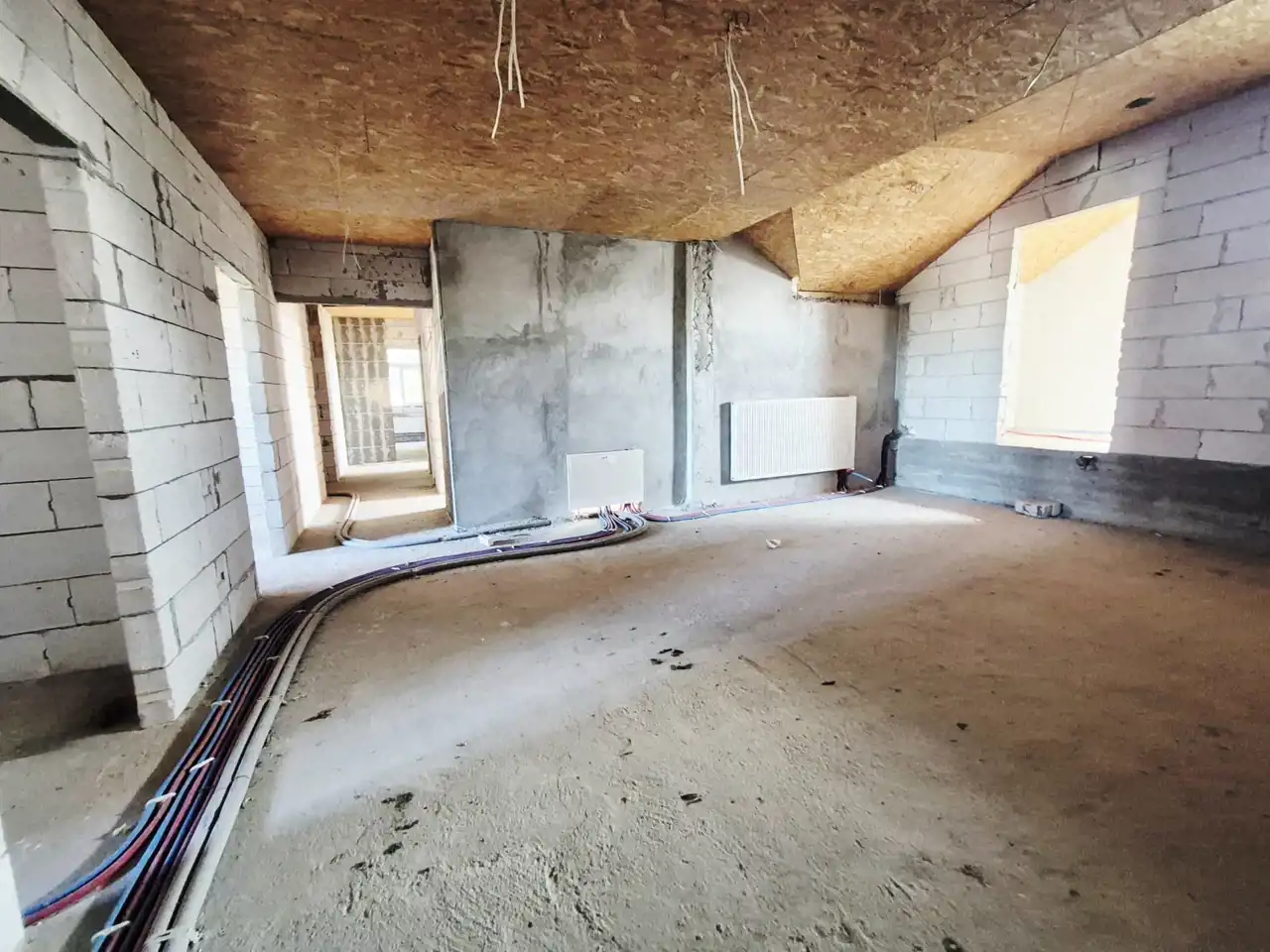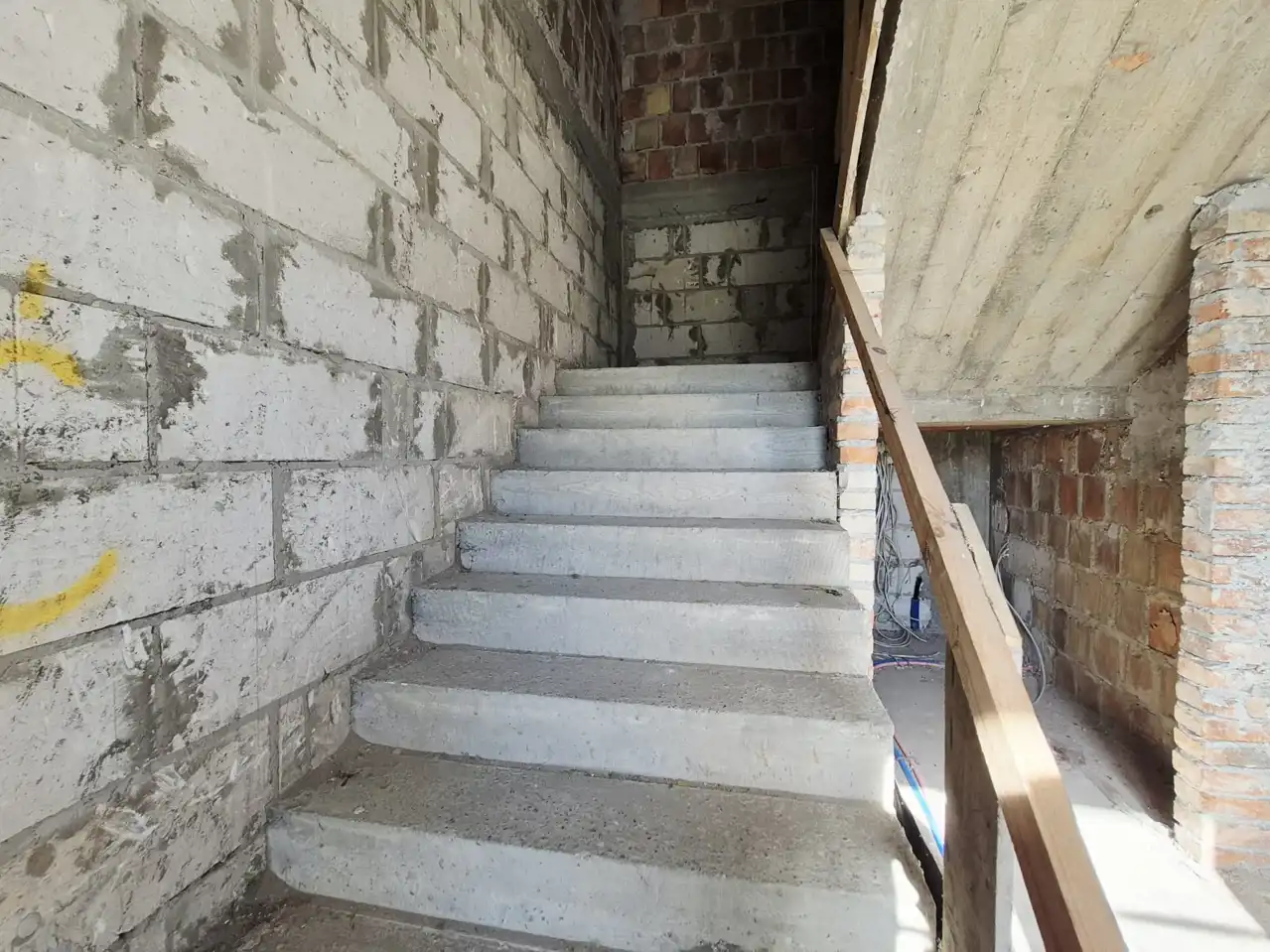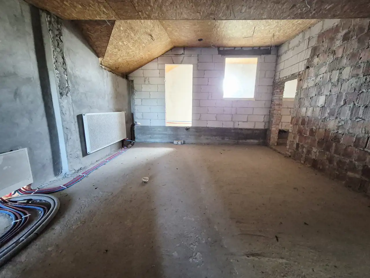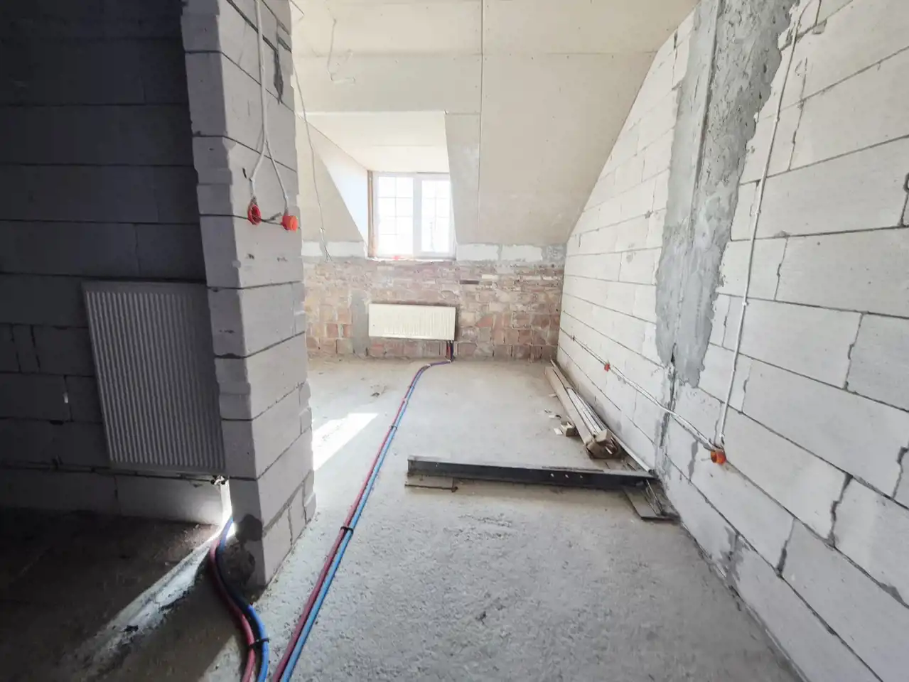 - Ściany z czerwonej cegły, ocieplone warstwą 15 cm styropianu, gwarantują doskonałą izolację termiczną i akustyczną,