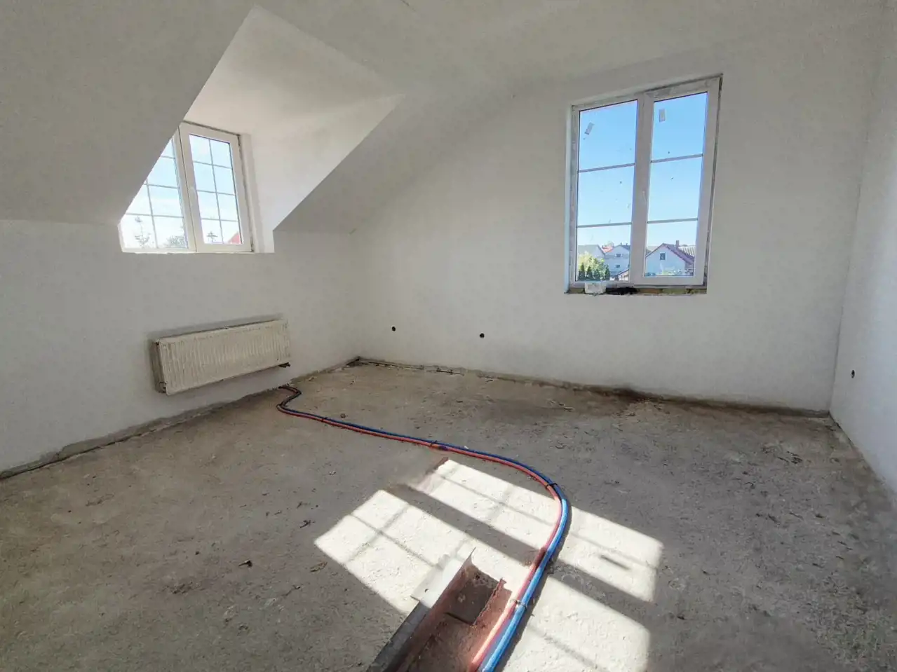 - Dwa kotły na ekogroszek, rozprowadzenie ciepła do każdego pomieszczenia,