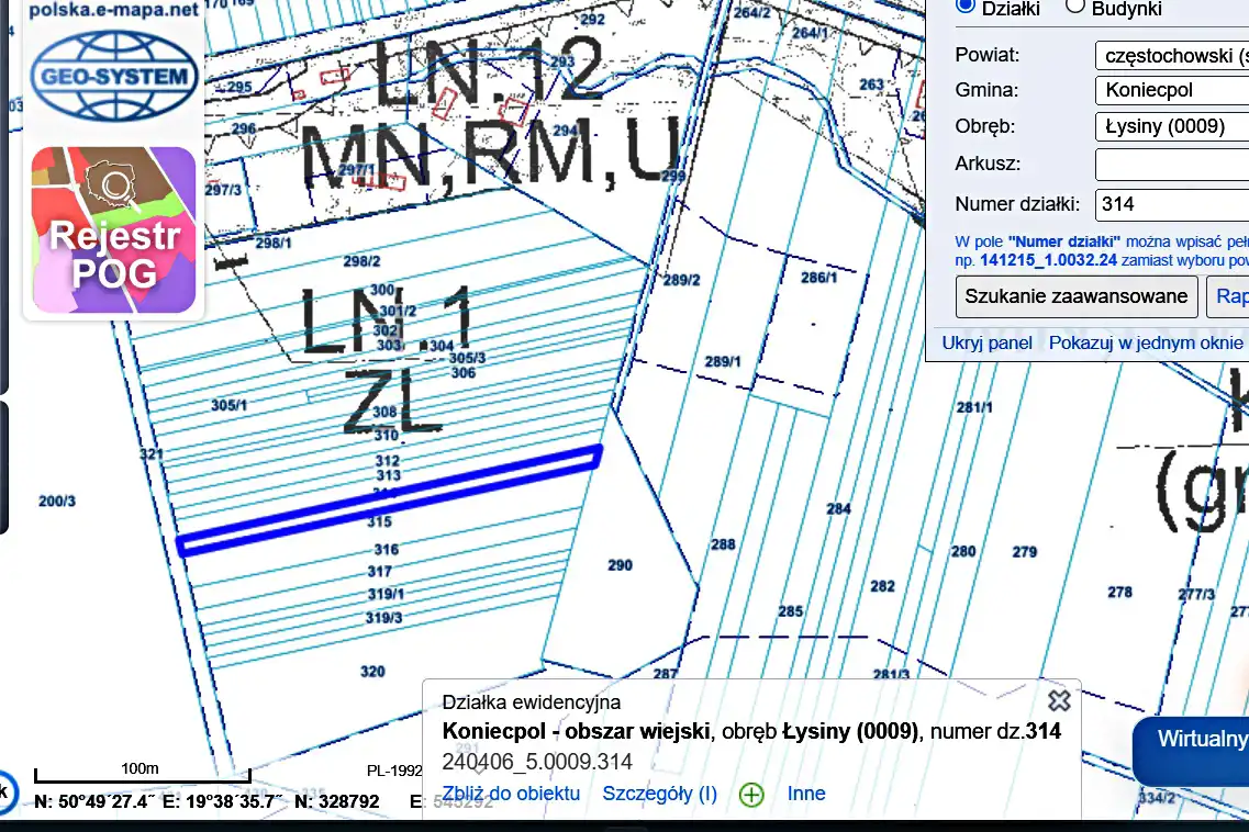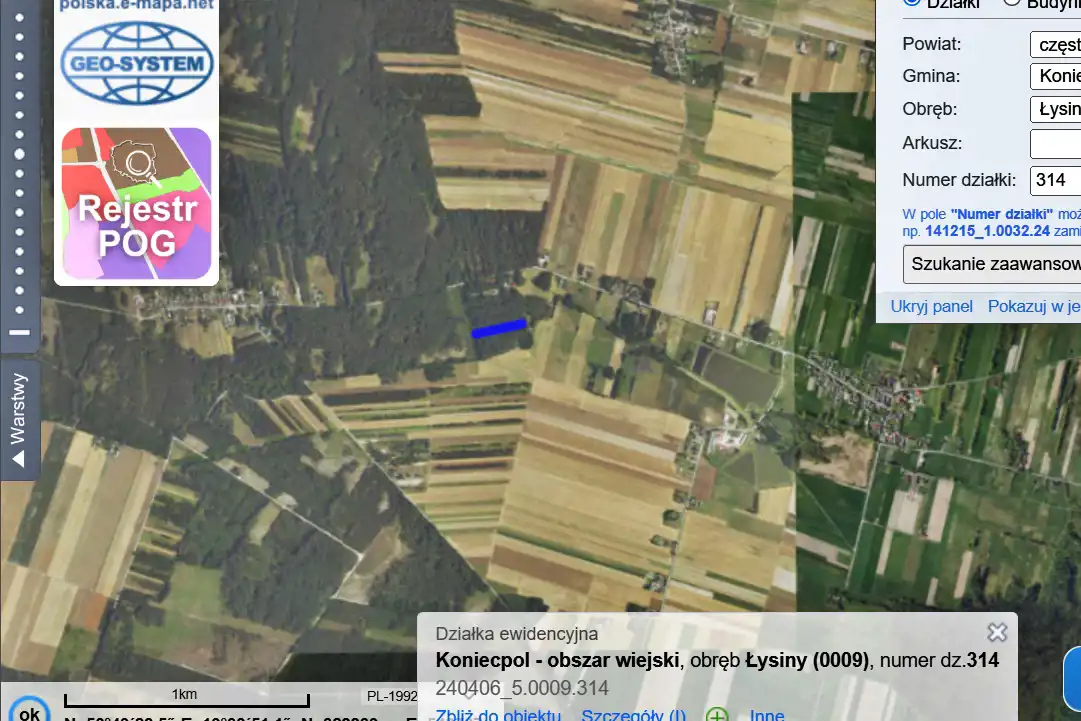 Na sprzedaż działka rolna – Łysiny, gmina Koniecpol